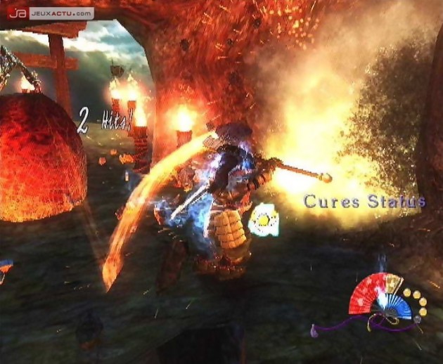 Otogi 2 : Immortal Warriors est à l'image de son aîné et de Ninja Gaiden, il ne fait pas partie de ces jeux qu’on peut prétendre finir en une après-midi ou alors vous pouvez aller postuler illico dans le Guinness des Records. Avec l’absence de checkpoint, un temps limité pour purifier tous les niveaux et une difficulté en constante progression, il fallait s’accrocher bec et ongles pour espérer voir la cinématique de fin. D’ailleurs, elle en valait bien la chandelle et le dernier niveau qui se déroulait dans les cieux réservait un combat dantesque contre Michizane. Mais que s’est-il passé après ? Une fois l’affrontement achevé, Raikoh avait tout simplement disparu ? Etait-il mort ? Lui avait-on purifié son âme à son tour ? Il faudra attendre l’arrivée de Otogi 2 : Immortal Warriors pour obtenir une réponse à cette question. Le début du jeu est en effet consacré au réveil de Raikoh, dont la présence sur terre manquait indéniablement. Les hordes de montres sont de retour et seul le retour du guerrier à l’armure céleste peut ramener la paix à nouveau dans ce bas monde. Car cette fois-ci le challenge est encore plus ardu puisque c’est ni plus ni moins le renard à neuf queues que vous allez affronter en tant que Boss final dans cette suite. Issu des vieilles légendes japonaises, ce démon blanc est plutôt d’actualité ces derniers temps. Bien sûr on le retrouve dans le manga Naruto mais également dans Blood Will Tell, toujours chez Sega. L’affrontement étant quelque peu inégal, Raikoh ne sera cette fois-ci pas seul dans ce combat du Bien face au Mal.