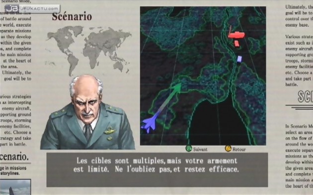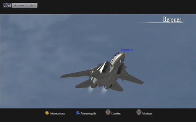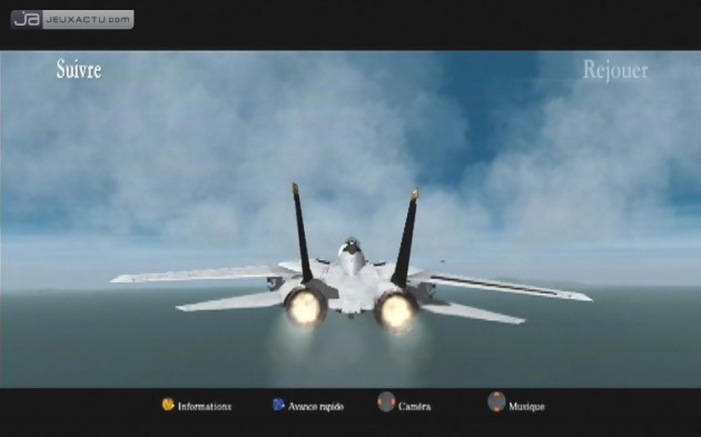 Parce que le monde connaît une crise politique sans précédent, la Energy AirForce est convoquée par l’armée américaine pour se débarrasser de menaces potentiellement terroristes. C’est un tour du monde qui attend nos 5 pilotes, prêts à embarquer dans le cockpit de guerre pour préserver la paix dans le monde. Un scénario on ne peut plus classique, simple prétexte à nous faire voyager aux quatre coins du globe. Amérique, Afrique, Asie et Europe, telles sont les terres que nous allons survoler pour profiter des paysages bien ternes de Over G Fighters. C’est en effet le premier défaut qui saute aux yeux du titre de Taito. Tristounette, la réalisation de Over G Fighters se montre surtout indigne d’une console next gen’ de la trempe de la Xbox 360. Alors que certains jeux tels que Gears of War ou Lost Planet sont autant d’arguments valables pour faire craquer le joueur qui n’a pas encore cédé à la tentation nouvelle génération, Over G Fighters fait partie de ces softs qui nous font regretter la première Xbox. Les environnements très désertiques manquent ainsi de détails et la modélisation des différentes machines de guerre du jeu (navires, véhicules terrestres) font sérieusement peine à voir. Les différents coucous proposé dans le jeu, bien qu’assez bien représentés, manquent de détails et d’effets en tout genre pour nous donner le barreau. Handicapé par une réalisation globalement morne, Over G Fighters affiche également un gameplay peu convaincant. Arcade ? Simulation ? Taito ne sait pas vraiment sur quel pied danser. Si certains éléments du gameplay (le voile noir et rouge indiquant des manœuvres dangereuses et aboutissant à l’explosion de l’appareil plus la gestion du décollage et de l’atterrissage) lorgnent du côté de la simu, d’autres aspects tels qu’une quantité quasi illimité de missiles, la facilité déconcertante avec laquelle on abat un avion ennemi et la courte durée des missions (certaines ne dépassent pas les 5 minutes de jeu) nous prouvent bien que les développeurs souhaitaient également ventiler leur gameplay. Manque de bol, le mélange ne prend pas et la sauce tourne rapidement au vinaigre. Les objectifs se montrent effectivement d’une monotonie affolante, les dogfights inexistants puisqu’on passe la plupart du temps à abattre ses ennemis à coup de missiles téléguidés. La sensation de vitesse ou d’être parmi les nuages est totalement absente et on s’amuse alors à faire des cabrioles arrières avec son engin ou foncer droit vers le sol pour espérer faire monter l’adrénaline. En vain malheureusement… Que reste-il alors à Over G Fighters ? Pas grand chose si ce n’est qu’il nous ferait presque regretter Blazing Angels, l’autre jeu d’avions récupéré par Ubisoft et qui n’était guère excitant non plus. D’oh !