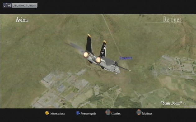 Parce que le monde connaît une crise politique sans précédent, la Energy AirForce est convoquée par l’armée américaine pour se débarrasser de menaces potentiellement terroristes. C’est un tour du monde qui attend nos 5 pilotes, prêts à embarquer dans le cockpit de guerre pour  préserver la paix dans le monde. Un scénario on ne peut plus classique, simple prétexte à nous faire voyager aux quatre coins du globe. Amérique, Afrique, Asie et Europe, telles sont les terres que nous allons survoler pour profiter des paysages bien ternes de Over G Fighters. C’est en effet le premier défaut qui saute aux yeux du titre de Taito. Tristounette, la réalisation de Over G Fighters se montre surtout indigne d’une console next gen’ de la trempe de la Xbox 360. Alors que certains jeux tels que Gears of War ou Lost Planet sont autant d’arguments valables pour faire craquer le joueur qui n’a pas encore cédé à la tentation nouvelle génération, Over G Fighters fait partie de ces softs qui nous font regretter la première Xbox. Les environnements très désertiques manquent ainsi de détails et la modélisation des différentes machines de guerre du jeu (navires, véhicules terrestres) font sérieusement peine à voir. Les différents coucous proposé dans le jeu, bien qu’assez bien représentés, manquent de détails et d’effets en tout genre pour nous donner le barreau. Handicapé par une réalisation globalement morne, Over G Fighters affiche également un gameplay peu convaincant. Arcade ? Simulation ? Taito ne sait pas vraiment sur quel pied danser. Si certains éléments du gameplay (le voile noir et rouge indiquant des manœuvres dangereuses et aboutissant à l’explosion de l’appareil plus la gestion du décollage et de l’atterrissage) lorgnent du côté de la simu, d’autres aspects tels qu’une quantité quasi illimité de missiles, la facilité déconcertante avec laquelle on abat un avion ennemi et la courte durée des missions (certaines ne dépassent pas les 5 minutes de jeu) nous prouvent bien que les développeurs souhaitaient également ventiler leur gameplay. Manque de bol, le mélange ne prend pas et la sauce tourne rapidement au vinaigre. Les objectifs se montrent effectivement d’une monotonie affolante, les dogfights inexistants puisqu’on passe la plupart du temps à abattre ses ennemis à coup de missiles téléguidés. La sensation de vitesse ou d’être parmi les nuages est totalement absente et on s’amuse alors à faire des cabrioles arrières avec son engin ou foncer droit vers le sol pour espérer faire monter l’adrénaline. En vain malheureusement… Que reste-il alors à Over G Fighters ? Pas grand chose si ce n’est qu’il nous ferait presque regretter Blazing Angels, l’autre jeu d’avions récupéré par Ubisoft et qui n’était guère excitant non plus. D’oh !