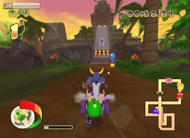Pac-Man se lance aussi dans le rallye et plagie Mario Kart de bout en bout, le génie en moins...