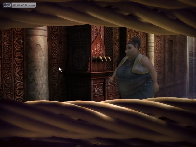 Avec la panthère, le clic enregistré n’est pas le même. Le joueur sélectionne l’endroit où la bête doit aller mais le programme sauvegarde l’endroit de l’écran ou le clic a été effectué et non pas la destination finale. A cause des changements d’orientation de la caméra consécutifs à un passage d’écran, la panthère fait parfois complètement demi tour pour revenir à l’écran initial. Un délire absolu. Ajoutez à cela des bugs tous plus originaux les uns que les autres et vous comprendrez qu’à l’instar du Canada Dry, Paradise ressemble à Syberia, ça a le goût de Syberia mais ce n’est pas Syberia. Prenons par exemple celui-ci assez cocasse. A la sortie du palais, Ann se retrouve dans une grande rue déserte. Elle doit se déplacer au bout pour lever une sorte de rideau qui lui permettra d’apercevoir le camion dans lequel elle est arrivée. Cette action a pour conséquence de déclencher une cinématique. Mais la première fois que j’ai soulevé le voile, j’ai vu le camion et il ne s’est rien passé. Au bout de deux heures de stagnation absolue, j’ai repris une ancienne sauvegarde et ça a marché. J’ai arrêté à peu près à ce moment là, la lutte contre les bugs s’avérant plus difficile que la progression dans le jeu elle-même… Dommage que le génie de Sokal soit accompagné d’une réalisation étonnamment médiocre. Un patch pourrait-il corriger la totalité des problèmes ? L’entreprise semble énorme…