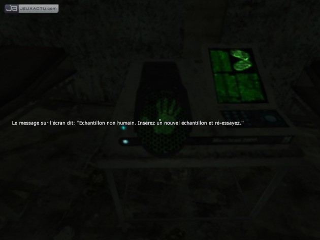 Frictional Games pioche en effet avec allégresse dans les univers conçus par d’autres, qu’il s’agisse d’écrivains, de cinéastes ou de studio de développement. Il y a du Alien dans ce Penumbra : Black Plague, mais également du Resident Evil, du Lovecraft et du Silent Hill, voire même du D et du Martian Gothic pour ceux qui ont bonne mémoire ! Claustrophobie, paranoïa et troubles mentaux divers, épidémie virale, mutations, expérimentations sauvages, théorie du complot, cette très brève expédition septentrionale brasse large, au risque de s’y perdre un peu. Difficile en effet d’aborder intelligemment tous ces thèmes en  cinq heures de jeu. L’intrigue, pas toujours limpide, se construit au fil des discussions de Philip avec son hôte mental – Clarence, envahissant symptôme de la contamination du héros par le virus local -, des lectures de notes et de brefs entretiens avec les très rares êtres humains survivants de la base. On apprend ainsi que des fouilles organisées dans la mine attenante ont permis d’exhumer un antique tombeau, sépulture d’où s’est échappé le virus fatal. L’affection a peu à peu transformé les individus exposés en créatures agressives, photophobes et animées, si l’on en croit les paperasses collectées, d’une véritable intelligence collective. Dans le complexe, cet esprit de ruche peine toutefois à prendre corps, puisque vous ne côtoierez pas plus d’un infecté à la fois, et que son comportement se limitera à vous courir après pour vous éclater le crâne. Habitué comme vous l’êtes à fracasser du zombie, cette attitude convenue ne vous étonnera guère. La vraie surprise réside dans votre totale incapacité à rendre la pareille. Toute confrontation directe tournera à votre désavantage puisque Philip ne combat pas. Jamais.