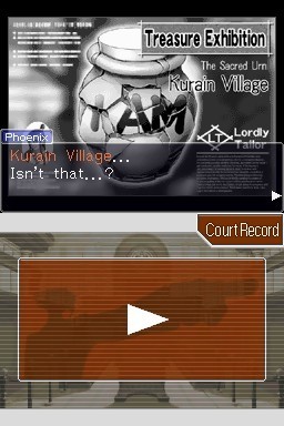 Il ne faut pas, oserait-on dire malheureusement, se leurrer ; ce nouvel opus de la série Phoenix Wright reste strictement dans les rails de son prédécesseur sans en sortir ne serait-ce qu'une demi-roue. Fonctionnant toujours selon le tryptique présentation-enquête-procès, ces deux dernières se répétant d'ailleurs fréquemment au sein d'une même affaire, Phoenix Wright Ace Attorney : Trials and Tribulations s'assure prudemment, au risque, malgré tout de décevoir des amateurs désireux d'un rythme un tant soit peu plus soutenu. En effet, et même si cette marque de fabrique de la saga peut être dépassée en se concentrant plus sur le fond que sur la forme, les phases d'enquête se révèlent profondément soporifiques, perdant le joueur dans un flot d'informations assez peu pertinentes, le faisant parfois dévier vers l'ennui dans une chasse au coupable pourtant intense dans les faits. Malgré la présence du système des verrous psychés, à savoir une sorte de contre-interrogatoire d'un témoin hors des limites du tribunal (qui relance un tantinet la cadence de ces longues épreuves de quasi point & click), rien n'a été fait pour offrir un vrai sentiment de tension, voire d'excitation. A l'inverse des phases de plaidoirie qui s'avèrent toujours aussi jouissives, alliant une passion relative à la simple fierté d'avoir raison avec des retournements de situations démesurés mais toujours justes. Dans ce flot de mécaniques déjà bien (trop ?) huilées, un homme surnage, portant le nom de Godot. Seule "vraie" nouveauté du soft, le procureur dont personne ne connaît le nom, l'âge ou le passé, apparaît immédiatement comme l'ennemi intime d'un Phoenix qui se verra souvent recouvert du café brûlant  de son adversaire après une réflexion déplacée. Bien moins percutant que ne l'était Miles Edgeworth, Godot, de par son masque et son caractère bien défini pénètre avec aisance dans un groupe de personnages dérangés et attachants, poussant les portes de la cruauté et de la bêtise clownesque avec une même force. Ce qui renforce l'aspect positif majeur du jeu, son écriture.