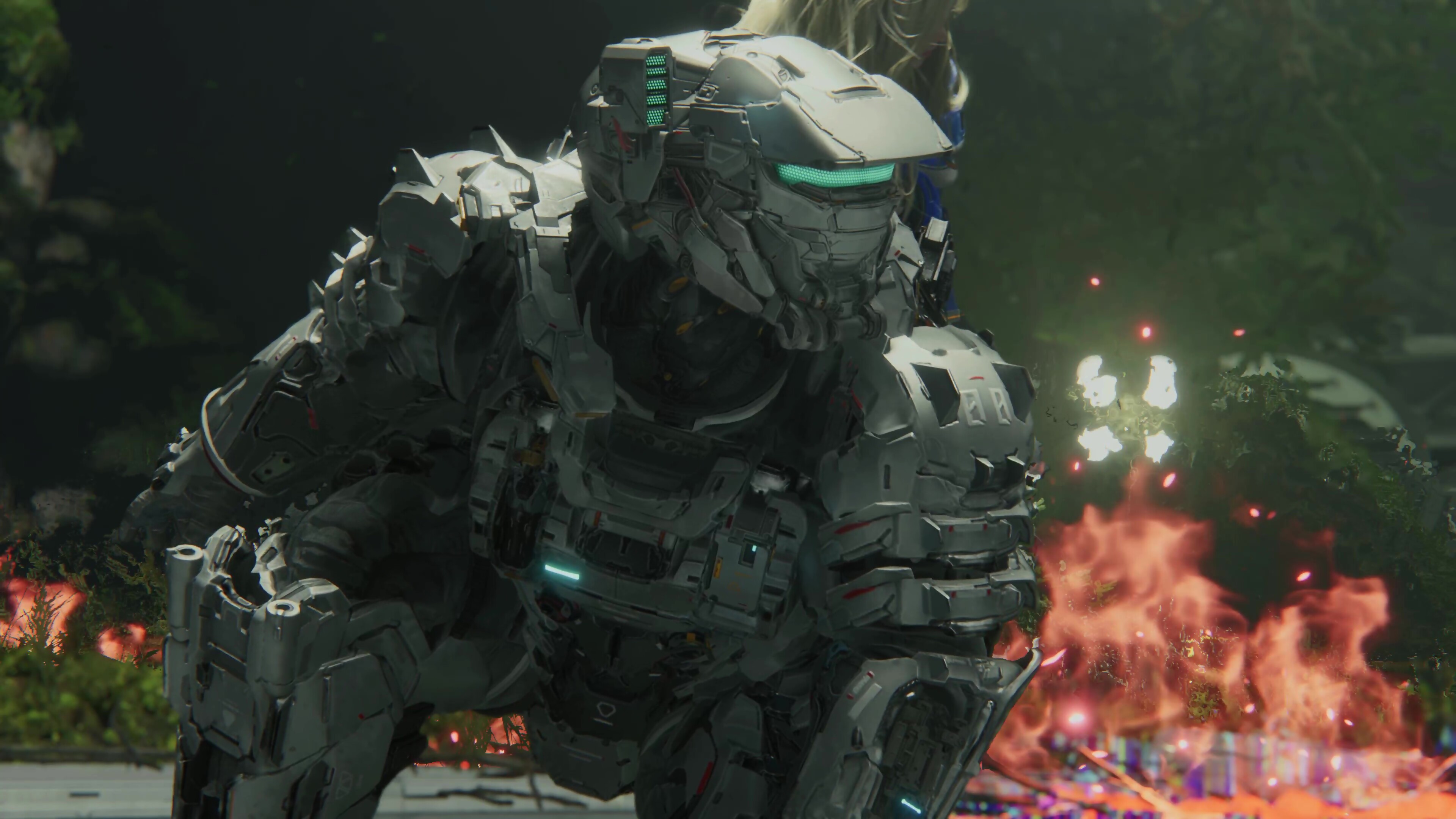 Ce qui a sans doute motivé Capcom à créer Pragmata, et sans doute à le maintenir en vie durant toutes ces années de développement un peu compliqué, c'est ce gameplay qui combine à la fois action nerveuse et stratégie en temps réel. Hugh Williams, l’astronaute humain d’un côté et Diana, ce robot humanoïde doté d’une intelligence autonome de l’autre. Un gameplay à deux têtes, à la fois différent et complémentaire et qui repose sur ces deux personnages que le joueur contrôle automatiquement. L’action, c’est pour Hugh, tandis que le piratage, c’est Diana qui s’en occupe. Hugh, c’est le personnage que le joueur contrôle directement. Il est certes massif, mais il dispose d’une grande mobilité et d’une souplesse assez remarquables, sachant qu’il va évidemment encore évoluer au fil de l’aventure et des capacités qu’on va pouvoir débloquer. Hugh dispose aussi d’un arsenal assez varié, avec différents types d’armes, des capacités liées à son armure et bien sûr tout l’aspect cosmétique en plus, qui va pousser le joueur à aller plus loin dans les défis. Grâce à ses propulseurs, Hugh peut courir facilement malgré son épaisse combinaison, il peut sauter aussi, flotter un instant dans les airs ou faire des dashs pour esquiver les attaques ennemies. Toutes ces compétences reliées entre elles donnent lieu à un personnage extrêmement plaisant à contrôler, surtout qu’avec le temps, on parvient à réaliser certains actions avec un tempo et une précision assez folle.
