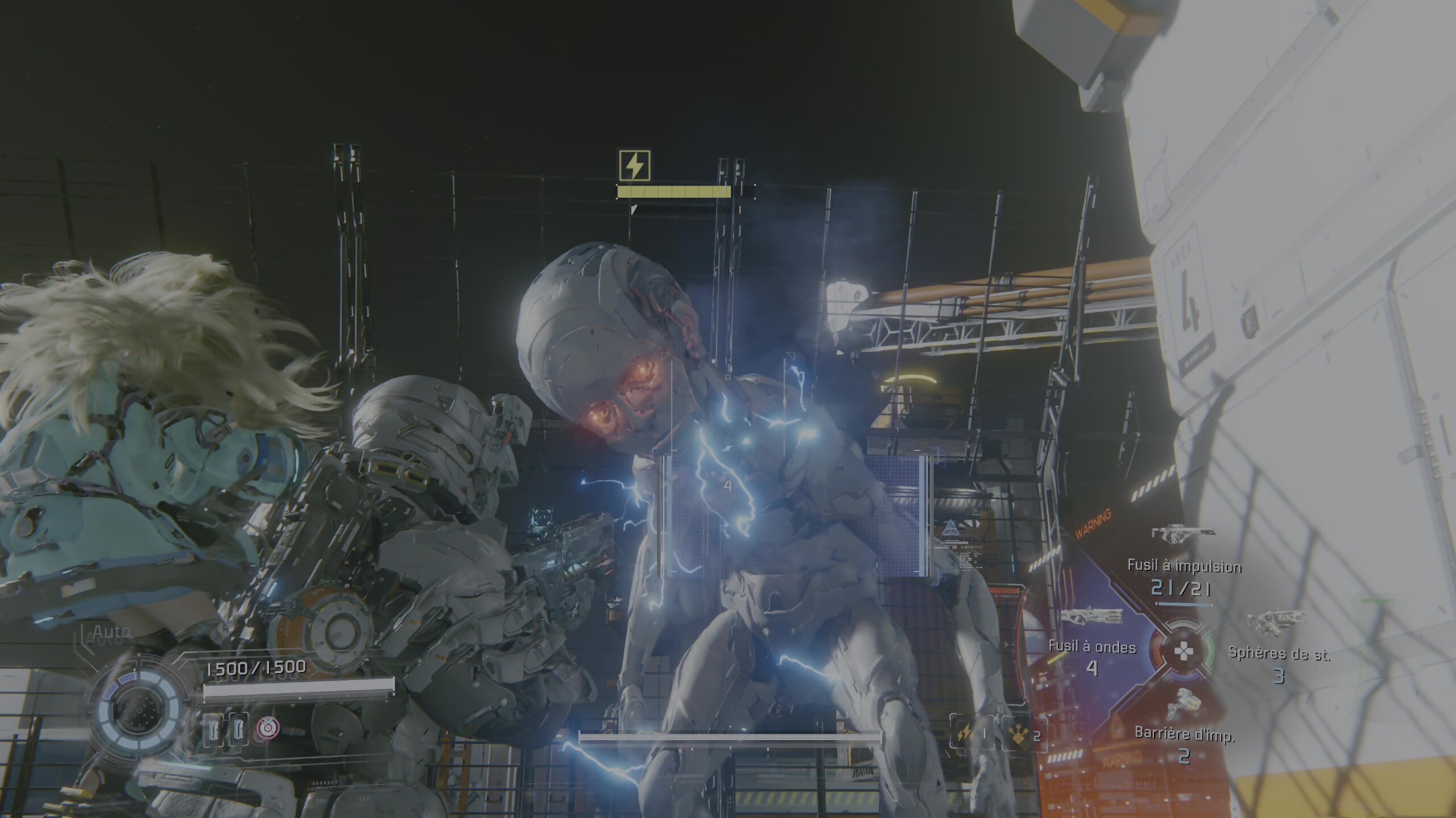Par contre, attention, lorsque la grille est active, le temps n’est pas ralenti et c’est à vous d’être ultra efficace pour aller au bout du labyrinthe, car plus vous allez avancer dans le jeu, plus les ennemis seront nombreux et plus la grille complexe à analyser. Et c’est justement là toute la difficulté : le combat ne s’arrête jamais pendant que vous piratez. Tout se déroule simultanément, ce qui oblige à rester constamment attentif. Il faut parfois accepter d’interrompre le piratage en cours si la situation devient trop dangereuse, pour éviter de subir des dégâts. Le véritable enjeu du gameplay de Pragmata repose donc sur cette double gestion permanente : mener l’action et résoudre le puzzle en même temps. Dans les situations les plus intenses, surtout lorsqu’il y a plusieurs ennemis à l’écran, il faut rapidement décider quel adversaire pirater en priorité, tout en choisissant l’arme la plus adaptée à la situation. Heureusement, les compétences de Hugh vont évoluer en même temps que la difficulté, avec des armes qui peuvent hacker plusieurs robots en même temps, d’autres qui vont créer un dôme protecteur autour de nos deux personnages, des champs magnétiques pour immobiliser les ennemis, et même une fonction qui permet à Diana de pirater en mode automatique et à la vitesse de la lumière. Cette option ne sera évidemment pas disponible à chaque fois, mais l’utiliser dans des moments tendus, ça aide à la survie. Finalement, c’est ce duo qui fait de Pragmata un jeu original. On ne fait pas juste du shoot classique : il faut aussi réfléchir vite, enchaîner les actions, et profiter des moments où le piratage ouvre des failles chez les ennemis. Ça donne un rythme assez unique, où action et stratégie sont constamment mélangées.