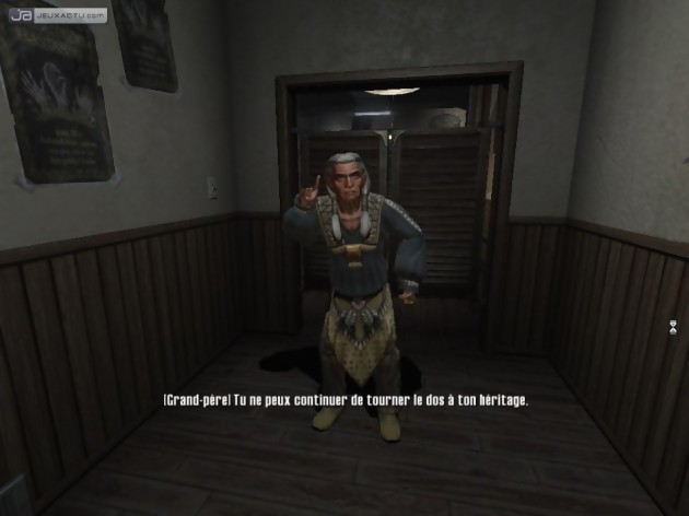 Donc avec les portes interdimensionnelles et la gravité, les développeurs ont pensé à intégrer quelques énigmes histoire de corser l’affaire. C’est ainsi que dans certaines, pièces, il faudra tirer sur des interrupteurs pour modifier les lois de l’attraction (extra)terrestre et se retrouver sur un autre pan de mur afin de trouver la sortie au risque de faire dégoupiller notre jeune Cherokee. Ce n’est pas tout car un autre aspect du jeu vient s’immiscer dans ces puzzles et ces séquences FPS : le monde spirituel. Le fait que Tommy soit un indien réfutant les légendes cherokees n’est pas un simple hasard. Plus il avance vers le dénouement du jeu, plus il découvre le pouvoir de son esprit. Après une chute mortelle, il se retrouve nez à nez avec son défunt grand-père qui lui explique comment il est facile de séparer l’âme du corps dans le but de traverser des obstacles insurmontables. Sous la forme spirituelle, Tommy peut ainsi activer des interrupteurs inaccessibles, traverser des champs de force, franchir des ravins sans pour autant bénéficier des lois de la gravité. Autrement dit, si le corps est suspendu par les pieds, l’âme se balade tranquillement sur le sol. Et autant dire que toutes ces particularités offrent de nouvelles énigmes à résoudre. Toujours sur la forme d’esprit, Tommy peut utiliser un arc magique puissant et détruire sans se faire voir les ennemis. Chaque flèche réduit la jauge spirituelle du héros et ce n’est qu’en récupérant l’âme des trépassés que Tommy peut poursuivre ainsi son chemin.