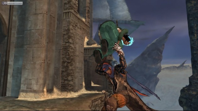 Avec un minimum de skill et de sang froid, on réussit tout de même à trouver des failles irréversibles comme les contre-attaques que l'on distribue à l'œil. Hormis les petites chutes de framerate que l’on observe ici et là, c’est surtout le fait d’utiliser systématiquement les mêmes attaques qui interpelle. Avec des ennemis qui ne changent jamais de stratégie d'attaque, il devient alors facile de les mettre à genoux en à peine deux minutes. Quelques QTE bien placés feront sérieusement transpirer, mais il est évident que Prince of Persia n'a pas le profil-type du jeu insurmontable. L'un des aspects positifs du système de combat par contre, c'est l'interactivité des décors qui a une incidence directe sur le comportement du Prince de Perse et des monstres contre lesquels il lutte. Coincer son vis-à-vis contre un pilier de béton procurera un avantage certain, de même que le repousser au bord d’une plate-forme permettra de l'éliminer d'un coup d'un seul. Prince of Persia laisse une certaine liberté d'exploration au joueur, si bien qu'il est possible de visiter les zones du royaume dans l'ordre que l'on souhaite. Toutefois, afin de conserver un minimum de cohérence, des sphères de lumière devront être récupérés pour à la fois augmenter la force de frappe d'Elika, et lui permettre d'accéder à de nouveaux pouvoirs indispensables pour explorer certains endroits d'habitude inaccessibles. On vous laisse les découvrir, c’est du lourd. En ce qui concerne la durée de vie de Prince of Persia, elle est artificiellement gonflée par la récolte de ces fameuses perles lumineuses ; 9 heures de jeu nous auront été nécessaires pour boucler l’aventure, avec 643 boules en poche. Le tout dans une ambiance musicale qui réussit le tour de force de nous rappeler que Prince of Persia est originaire du Moyen-Orient. Oui, on l’avait oublié.