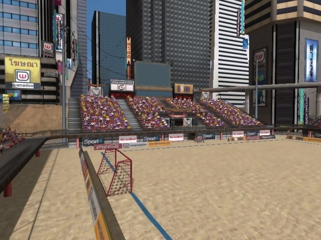 Quel est le principal élément de ce sport, allez, je vous laisse du temps pour réfléchir… Non, vous n’avez pas droit à l’appel à un ami, ni au 50/50. Le sable ! Bonne réponse. Les matchs pourraient se dérouler sur du bitume qu’on ne sentirait pas une grande différence. Nous sommes loin de la surface que l’on retrouve dans Beach Spiker. Au fur et à mesure des actions spectaculaires que vos joueurs accomplissent, une jauge de « pouvoir » se remplit et une fois le maximum atteint, vos joueurs rentrent alors dans une sorte d’état de grâce leur permettant de réussir des actions dignes d’un Olive Et Tom… Bien, dans la réalité, vos joueurs sont entourés d’une aura bleue et leurs caractéristiques sont améliorées. Si alors vous tirez dans le but adverse (ou le vôtre si le cœur vous en dit) vous aurez droit à un ralenti qui devait sans doute, dans l’esprit des développeurs, retranscrire l’impression de puissance de votre frappe. Cet état dure quelques secondes et ensuite vous voilà replongé dans la dure vie du joueur de beach soccer sous un soleil de plomb. Les commentaires sont très mal gérés, sonnant toujours faux et répétitifs au possible, ils lassent plus qu’ils ne donnent de punch (n’est pas George Eddy qui veut). Cependant tout n’est pas négatif les concernant car vous saurez désormais dire « Et c’est le but » en thaïlandais, c’est peu mais c’est déjà beaucoup… On s’amuse avec les dribbles, les passes hautes et les retournés, la jauge de pouvoir brise un peu le rythme permettant alors de se sortir d’une situation difficile. Cependant, passé 30 minutes de jeu, l’ennui commence à vous gagner. Pourtant tous les éléments étaient réunis pour offrir un jeu attrayant.