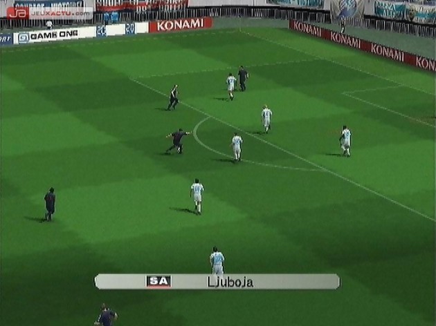 Konami a voulu faire de Pro Evolution Soccer 5 un jeu propre, un peu trop propre d’ailleurs. Il suffit d’observer l’attitude de l’arbitre pour se rendre compte que PES 5 a accentué la règle de l’avantage et le système de fautes. Tirage de maillots, coup d’épaule, ascenseur ou poussette, le moindre écart de conduite est vite sifflé par Monsieur l’arbitre. Cela ne veut pas dire qu’il sortira à tout bout de champs le carton jaune ou rouge comme dans FIFA 06. Cependant, il a beaucoup plus recours à l’avantage afin de laisser l’action se terminer. A la différence de Pro Evolution Soccer 4, le logo jaune ne disparaît pas après quelques secondes de flottement. Il faut absolument que l’équipe victime d’une faute récupère le ballon que le jeu se poursuive sinon c’est le coup franc assuré. Parlons-en des coups francs. Bizarrement, il est beaucoup plus facile de viser l’équerre dans PES 5 que dans PES 4. Ainsi donc le même plus mauvais tireur, autrement dit moi, peut devenir le Juninho virtuel du coup franc. Vous l’aurez compris, évitez au maximum les fautes. D’ailleurs, elle sont parfois synonymes de blessures tant pour le défenseur que pour l’attaquant. Lorsqu’elles ne sont pas immédiates, les douleurs peuvent se réveiller plus tard dans le match. A ce moment-là, c’est un régal pour les yeux de voir l’animation des joueurs tant celle-ci est crédible. Course ralentie et boiteuse, tout est là pour faire de Pro Evolution Soccer 5 un vrai match de foot. Et la motion capture a encore été améliorée offrant un éventail plus important de mouvement retranscrivant à la perfection la gestuelle de nos sportifs. D’ailleurs, l’attitude de certains footballeurs a été travaillée pour la rendre unique, on pense notamment au sprint de Ronaldinho, à la pause de Beckham, de Thierry Henri ou de Roberto Carlos avant un coup de pied arrêté. Pro Evolution Soccer 5 nous offre un spectacle à la hauteur de ses ambitions même si, il faut l’avouer, les matchs sont beaucoup hachés que dans les précédents volets.