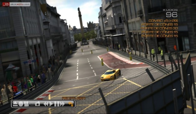 Reproduites avec tout autant de soin, les quatre métropoles sur lesquelles vous brûlerez la gomme manifesteront rapidement leur propre ambiance. Du pont interminable de New York où les excès sont autorisés à plus de 350km/h, aux routes irrégulières de Tokyo en passant par les boulevards illuminés de Las Vegas, il vous faudra conduire vite, bien et surtout avec style. Si vos victoires débloquent en effet de nouveaux championnats, seuls les précieux Kudos cumulés à grands coups de dérapages contrôlés et autres figures classieuses vous permettront de prendre du grade et ainsi de déverrouiller les concept car et autres bolides à acheter ensuite avec les crédits trop généreusement offerts lors de chaque étape. Venants gonflés vos garages, les voitures s’achètent alors un peu trop facilement, et on s’offre très rapidement les modèles les plus rares comme la Ferrari F50 GT dont un seul modèle existe encore sur les trois construits, ou la McLaren F1 LM représentée à tout juste cinq exemplaires. Mais ne crachons pas dans la souple et avouons qu’il est toujours plaisant de monter à bords de ces engins sinon inatteignables et de les piloter dans les plus belles capitales, sur les circuits de notre propre création qui plus est. Avec son éditeur de circuits, Project Gotham Racing 3 permet en effet de construire très facilement son tracé à partir des plans aériens de la ville, pour ensuite s’y essayer en solo ou mieux, y défier les autres pilotes du globe grâce au jeu en ligne. Avec son lot de récompenses à débloquer uniquement sur le Live et la chaîne Gotham TV permettant de visualiser les courses de ses amis ou celles des meilleurs pilotes au monde, le jeu risque de squatter longtemps votre connexion Internet pour peu que vous teniez à votre classement.