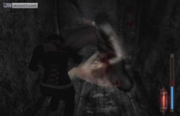 Si la majeure partie du jeu se joue aux commandes de Rei Kurosawa, deux autres personnages participent également au bon déroulement du schmilblick. Miku Hinasaki, héroïne du premier Project Zero, partage le même appartement que Rei. Si dans un premier temps elle se contente uniquement d’épauler Rei en lui fournissant des indices et en enquêtant parallèlement sur la disparition de certaines personnes, elle devient dès le quatrième chapitre le second personnage jouable du jeu, juste avant de céder la main à Kei Amakura, le seul mâle du jeu. Histoire diversifier le gameplay mais surtout de varier les plaisirs, Tecmo a insufflé des capacités bien spécifiques à chacun de ces trois protagonistes. En tant que personnage central du jeu, Rei dispose d’un certain équilibre entre la vitesse et l’attaque. Miku en revanche possède une grande force mentale, ce qui lui permet d’infliger davantage de dégâts chez les fantômes. Sa petite taille lui permet également d’accéder à des lieux généralement inaccessibles. Quant à Kei, il se sert de sa force masculine pour déplacer des objets lourds et de ses connaissances pour déchiffrer des énigmes trop pointilleuses pour nos demoiselles. Chacun possède donc ses propres atouts et handicaps mais puisque le game design a été bien étudié, chaque personnage répond aux attentes de la situation en cours. Inutile donc de chercher un écran de sélection des personnages, les chapitres s’enchaînent et les protagonistes sont imposés. Le seul point commun entre ces individus résident dans leur faculté à passer du monde des rêves - ou devons-nous plutôt dire cauchemars - à la réalité en passant sous la couette. Les allers-retours entre les deux mondes permettent de récupérer de précieuses informations comme ces clichés pris dans la demeure hantée et qu’il convient de faire développer dans la chambre noire une fois de retour dans la demeure de Rei. Sorte de havre de paix, l’appartement des deux jeunes filles permet également au joueur de relâcher son attention et de faire baisser de quelques niveaux son trouillomètre. Pas trop tout de même car nous sommes jamais à l’abri de surprises inattendues.