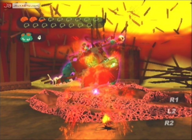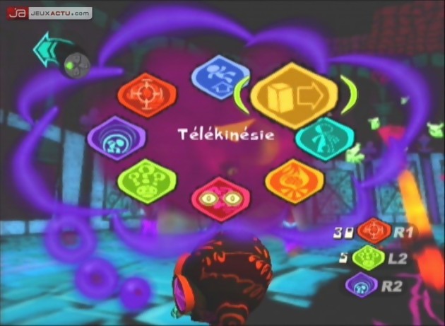 Recrue dans un camp visant à former les enfants doués de pouvoir psychiques, vous incarnez Razputine, un jeune fugitif dont les facultés vont vite le distinguer du reste d’une promotion qu’il devra bientôt sauver. En effet, si chaque élève dispose bien d’une psyché hors du commun, ce sont justement leur précieux cerveau qui va faire l’objet d’un kidnapping massif lors d’un complot visant la destruction même des Psychonauts. Réduits à l’état de légumes tout juste bons à s’abrutir devant une télévision au programme unique et, en l’absence des professeurs convoqués dans une nouvelle mission, vos anciens camarades de classe n’auront alors plus que vous en guise d’espoir, pour leur redonner vie à travers leur étrange organe. Loin des point & click qui ont fait la réputation de Tim Schafer (Monkey Island, Full Throttle, Day of The Tentacle, Grim Fandango), Psychonauts a préféré jouer la carte de la plate-forme. Pas de panique toutefois pour les fans de celui qui figure comme l’un des plus grands créateurs de jeu, l’esprit coloré et l’ambiance déjantée qui lui sont propres sont bel et bien présents dans sa dernière production. Si le fond changera alors peu par rapport à ce qui existe déjà dans la catégorie, c’est donc véritablement sur la forme que le charme de Psychonauts va agir.