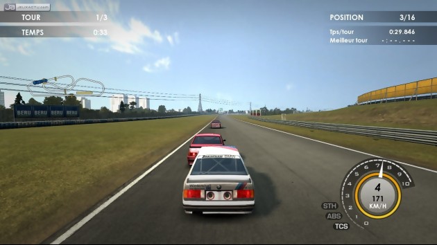 L'I.A. est sans doute le principal point négatif que l'on peut retenir de ce RACE Pro qui n'a décidément peur de rien, même pas des grosses collisions capables de ruiner une course parfaitement menée jusqu'à présent. C'est simple, la console profite de la moindre opportunité pour balancer le joueur dans le bac à gravier, sans dévier de sa trajectoire, ce qui a le don d'énerver. Les coups de Trafalgar ne s'arrêtent pas là, puisque rien ne sera fait pour vous épargner au moment du départ, et encore moins pour vous faciliter le dépassement alors que vous aurez clairement pris l'avantage sur le concurrent. Même topo lorsque l'on enfile les tours rapides, mais que l'on ne parvient toujours pas à décrocher la voiture qui nous colle aux basques depuis quelques tours. Enfin, on pestera également contre le phénomène d'aspiration qui semble ne jouer qu'en faveur du CPU dans les longues lignes droites. Bref, on n'est pas loin du syndrome Mario Kart et de tous ses abus, au point qu'une carapace rouge au milieu de la piste ne ferait pas tâche. Plus sérieusement, la réalisation de RACE Pro ne casse pas la baraque et affiche des voitures aux courbes sobres, pas flamboyantes et parfois même aliasées. Si l'on ne demande pas aux architectes de SimBin d’édifier des circuits dans les quartiers des Champs-Elysées, force est de constater que les décors flirtent avec le vide, malgré les quelques peupliers plantés ici et là. Ce n'est pas vraiment gênant pour être honnête, à condition que l'animation suive derrière. Ce qui n'est pas vraiment le cas, avec un frame-rate qui chute dès lors que les voitures se bousculent à l'écran. Heureusement que les variations climatiques sauvent les meubles et réveillent la rétine. Enfin, pour être complet, soulignons que l'ambiance sonore de RACE Pro est tout simplement au bout du rouleau avec des moteurs qui miaulent plus qu'ils ne rugissent. On aura tout entendu.