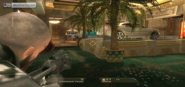 A la rigueur, même si vous vous gourez d’arsenal en entamant une mission, ce n’est pas dramatique car à vos côtés, vous retrouvez deux experts en lutte anti-terroriste qui répondront au doigt et à l’œil à vos ordres. Comme d’habitude, le bouton A permet de choisir un endroit où vos coéquipiers se mettront à couvert. Du fait de leur expérience, ils se positionneront stratégiquement par rapport au level-design et ne resteront pas bêtement plantés au milieu d’un couloir, totalement à découvert. En mode infiltration, ils ne feront que repérer les cibles, qu’elles soient ennemies ou civiles. Jung et Michael n’ouvriront le jeu que pour riposter. Au contraire, si vous voulez qu’ils fassent le boulot, vous pouvez activer le mode assaut. A ce moment-là, ils n’hésiteront pas à abattre le moindre terroriste qui passera dans leur champ de vision. Cependant, ce mode s’active automatiquement lorsque vous entrez dans une pièce. Comme d’habitude, il est possible de placer ses hommes devant une porte afin de préparer une entrée qui ne laissera personne indifférent. Et comme à chaque fois, plusieurs options s’offrent à vous : Ouverture / Nettoyage, Ouverture / Grenade Frag, Ouverture / Fumigène, Ouverture / Grenade Flash ou exploser porte. Mais le petit truc en plus dans Tom Clancy's Rainbow Six : Vegas, c’est la possibilité d’entrevoir le positionnement des ennemis grâce à la caméra serpent qui se glisse sous la porte. Bien pratique, ce petit accessoire vous permet aussi de planifier des attaques simultanées. En ciblant une autre porte, vous pouvez demander à vos hommes de s’y poster sans quitter la vue caméra ou encore lorsque vous lockez un adversaire, vous pouvez l’assigner à l’un de vos hommes qui le prendra en chasse dès l’ouverture de la porte. Parmi les nouvelles subtilités de jeu, vous pouvez également faire irruption dans une pièce par les fenêtres ou les plafonds. Selon les missions, vous trouverez des points où accrocher des cordages pour descendre en rappel seul ou accompagné de vos coéquipiers. Et une nouvelle fois, vous pourrez leur ordonner de descendre, monter ou entrer dans la pièce. Toutes ces actions tendent à rendre les opérations plus prenantes et ça marche. Mais difficile de ne pas être frustré lorsqu’on découvre avec quelle efficacité vos potes font mouche tant et si bien qu’on finit par être en retrait de l’action laissant ses coéquipiers se charger du sale boulot. Autre souci et non des moindres, l’intelligence artificielle est en dent de scie. Tantôt les adversaires vous prendront en revers, tantôt ils resteront plantés pensant être à couvert malgré deux, trois balles qui leur sifflent aux oreilles. L’ensemble de ces données donne finalement un jeu beaucoup moins tactique qu’il n’y paraît avec un sérieux penchant pour les séquences de bourrinage lorsque les ennemis débarquent de toutes parts. Et si l’un de vos coéquipiers tombent sous les balles, vous avez moyen de le soigner avant que sa jauge de santé ne tombe dans le rouge. Cette option facilite grandement la tâche pour un jeu qui n’est pas des plus longs en mode campagne. Pour pimenter d’avantage le jeu et pour gagner en séquences tactiques, il existe le mode réaliste où le moindre headshot peut s’avérer fatal.