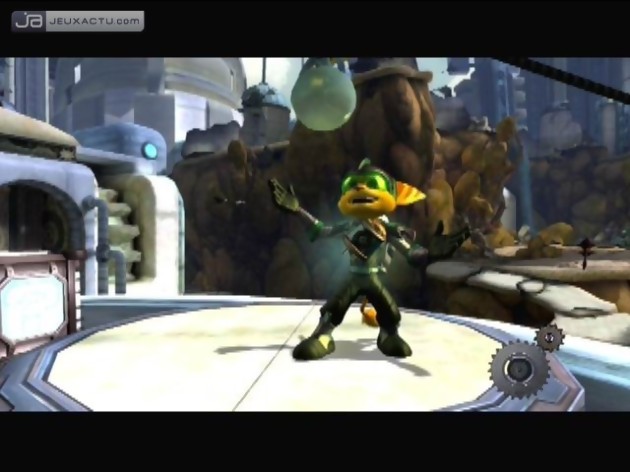 Rien de follement nouveau par rapport aux précédentes versions, direz-vous. Et ce n'est pas faux, Insomniac n'a pas voulu révolutionner sa série mais bel et bien lui apporter le petit souffle nouvelle génération suffisant à susciter à nouveau notre intérêt. Et ce souffle est matérialisé par deux caractéristiques. La première, c'est l'utilisation des fonctionnalités de la manette Sixaxis. Plutôt que d'en abuser, les développeurs ont su en tirer partie uniquement à certains moments et de façon très efficace. Ainsi vous devez remuer la manette quand Ratchet fait de la chute libre et plane, ou encore vise les points faibles d'un mur avec un laser pour créer une ouverture. Quant au piratage de systèmes électroniques, il vous demande d'incliner un plateau afin de déplacer une bille destinée à assurer le passage d'électricité dans tous les circuits. Le Sixasis est donc régulièrement, pas trop fréquemment, sollicité pour apporter un plus très appréciable. Et c'est sans doute la meilleure utilisation à en faire, tant on se rend compte que baser une jouabilité entière dessus se révèle souvent vain (qui a parlé de Lair ?). Mais l'autre témoin du passage à la PlayStation 3 de la série est assurémment la réalisation. C'est bien simple : c'est magnifique. Dès les premières secondes, on se rend compte qu'on a changé de génération : les décors sont bourrés de détails, animés de partout, colorés, le tout animé à la perfection. C'était déjà le cas, dans une moindre mesure, avant, mais HD oblige, on est bluffé par tant de richesse. Combiné au design toujours aussi sympathique des personnages, on a parfois l'impression d'être devant un film signé Pixar, toutes proportions gardées. Pas de doute, avec Ratchet & Clank, ont tient une excellente démo technique des capacités de la machine. On n'ose imagine la tête d'une éventuelle suite dans un ou deux ans...