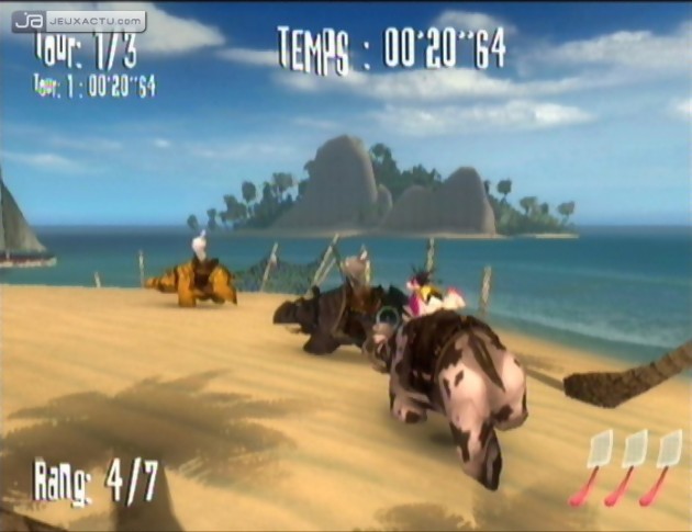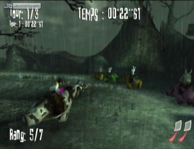 Les concepteurs de Rayman contre les Lapins Crétins ont fait preuve d’imagination et parfois même d’ingéniosité pour parvenir à leur fin. Certes, parmi les 75 mini-jeux, il y a certains qui tombent rapidement à plat, avec un intérêt limité mais il faut bien avouer qu’il y a de quoi se fendre la poire, aussi bien au sens propre que figuré. Ceux qui ont un grave besoin de perdre quelques kilos superflus seront ravis d’apprendre qu’il est possible de brûler ses calories en trop grâce à Rayman contre les Lapins Crétins. Entre le lancer de Superlapin, le jeu du 1, 2, 3 Soleil, les tirs au but, la course à pieds ou bien encore le jus de carotte, il y a de quoi se muscler les bras. A ce propos, Ubisoft a classé les différentes épreuves en plusieurs sections et celle baptisée musculation n’a pas usurpé sa réputation. Fort heureusement, il y a d’autres épreuves moins physiques, plus portées sur la réflexion et qui nous feront un bien fou pour reposer ses muscles. Certains défis sont plutôt simples et rigolos, tandis que d’autres risquent de mettre nos nerfs à rude épreuve, tant la difficulté est excessive. On pense notamment au mini-jeu "Les lapins sont plutôt lents à la détente" où l’objectif est de faire glisser une bille d’un point A à un point B, tout en évitant les trous et ce par le biais d’un plateau tournant. Pas facile surtout lorsque son bras est encore étourdi à l’issu de cette séance de courses effrénées.