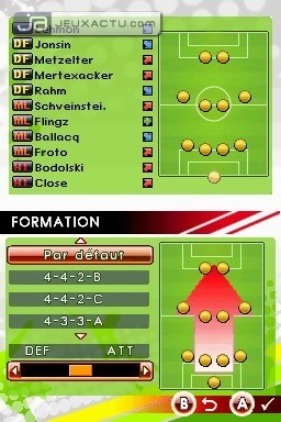 La réalisation de Real Football 2009 fait preuve d'un peu plus de finesse que celle de l'opus précédent : animation un poil plus fluide, character design plus soigné, gestuelle des joueurs plus convaincante, les développeurs de Gameloft se sont mis au football cette année. La qualité des graphismes rappelle les performances de Pro Evolution Soccer sur PSOne, ce qui justifie la présence des coudes et des genoux pointus. On regrettera par contre que Real Football 2009 ne tente pas de focus sur le visage des joueurs, d'autant plus que l'on a aucun mal à les reconnaître sur le terrain. Enfin, certaines phases de jeu sont par moments l'occasion d'admirer de fabuleux amas de pixels, surtout lorsque ça joue au billard en pleine surface de réparation. Quoi qu'il en soit, la prise en main s'avère immédiate, du moins lorsque l’on n'opte pas pour les options tactiles du jeu qui impliquent un dur apprentissage de tous les gribouillis, pour exécuter le bon geste au bon moment. Ce n'est pas un miracle, c'est vrai, mais Real Football 2009 contraint désormais le joueur à faire tourner le ballon pour s'approcher des buts. On le constate dès les premières parties : les grands sprints rectilignes ne suffisent plus à transpercer les défenses adverses, ce qui permet au titre de gagner en réalisme et en crédibilité. Cela dit, on n'atteint pas encore le niveau d'un FIFA 09 où le jeu sans ballon est aussi important que de planter des buts. Les possibilités offertes par les partenaires sont donc nettement plus réduites, surtout en Difficile où l'on se remet souvent au même schéma tactique pour minimiser la prise de risques. L'I.A. n'est pas réellement invincible dès que l'on souhaite corser les débats, mais il est vrai qu'elle a tendance à croquer la balle dès qu'elle le récupère, et tenter des frappes venues d'une autre galaxie. Bref, il y a un vrai problème d'équilibre à ce niveau-là : soit on se retrouve avec des manchots qui essaient de rentrer dans les buts avec le ballon, soit on a droit à des aberrations agaçantes du type dégagement foireux du gardien de but à la FIFA sur Megadrive. Enorme. Excellents aussi les coups francs qui prennent des trajectoires folkloriques, même bien placé, que le joueur soit droitier ou gaucher. En termes de contenu, Real Football 2009 ne propose rien d'extraordinaire avec les classiques Match Amical, Modes de Jeu et Entraînement. On pourra même organiser des séances de penalty pour son plaisir perso, et prendre part aux différentes compétitions que l'on est en droit de trouver dans un jeu de foot. Un mode multijoueur est également de mise, mais ne permet pas de jouer avec une seule cartouche. Quant au jeu en ligne, il faudra également repasser.