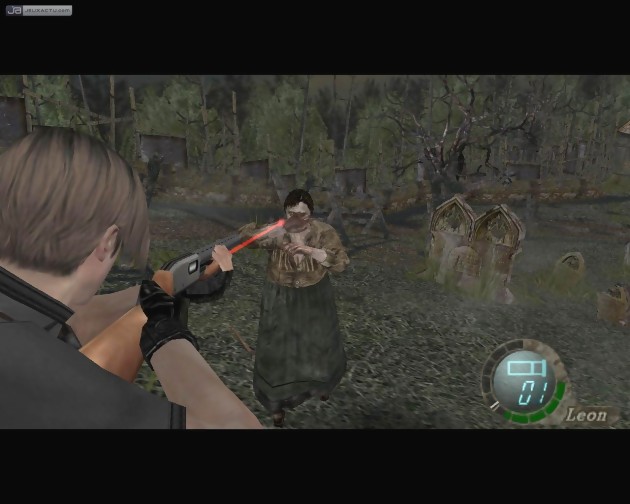 Comme nous vous l'avons dit en prélude, Resident Evil 4 aspire à nous offrir un gameplay qui se démarque complètement de ce que nous avons pu voir jusqu'à présent. Il est vrai que le concept commençait sérieusement à s'essouffler, et c'est pour cette raison que Shinji Mikami a décidé de donner un bon coup de fouet à la série pour qu'elle devienne méconnaissable, dans le bon sens du terme bien évidemment. Du coté des commandes, rien de bien neuf à se mettre sous la dent si ce n'est le bouton Triangle qui permet d'afficher désormais une carte des environs, et sur laquelle sont indiquées quelques informations bien utiles (points de sauvegarde, marchands, portes déverouillées...). X continue de faire office de bouton d'action à chaque fois que le CPU indique qu'il est possible de faire un mouvement bien précis; dans ce cas l'icône du bouton s'affiche à l'écran avec l'action réalisable écrite juste en-dessous. La vue employée pour tirer et est à peu de choses près celle utilisée dans les Splinter Cell. Cette vue, à laquelle on s'habitue très rapidement, présente deux avantages : tout d'abord, elle offre un confort et une précision de tir que l'on n'avait pas dans les volumes précédents, ensuite, elle permet de blesser les ennemis à des endroits bien précis du corps. Par exemple, si l'on souhaite économiser ses munitions, il est possible de viser le tibia du monstre en question pour le faire ramper, et fuir par la suite. Toujours pour ne pas gaspiller les balles, le headshot (viser la tête) s'avère aussi être un excellent moyen de venir à bout des morts vivants en un minimum de temps. Enfin, on peut aussi choisir de laisser les monstres se regrouper devant soi, et tirer une balle pour tous les coucher au sol en une seule fois, avec une arme assez puissante telle que le Riot Shotgun pour ne citer que celle-là.
