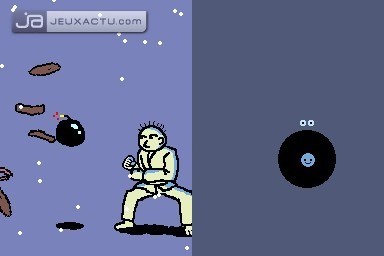 Mais avant d'en arriver là, il faudra en baver un minimum. Rhythm Paradise est, vous l'aurez compris, une compilation de mini-jeux qui va puiser son inspiration dans tout ce qui est susceptible, dans l'esprit pas toujours très net des développeurs, d'inclure de près ou de loin une notion de rythme. Autant dire que si vous n'êtes pas le roi du dancefloor, il sera parfois préférable, messieurs, de laisser la console à votre moitié qui rêve chaque été de cours de salsa. Les résultats sont garantis. Tapoter son écran tactile, y tracer de légers coups vifs, ou maintenir le stylet appuyé en se gardant de trahir le beat est une affaire pas aussi mince qu'il n'y paraît. Si la première épreuve, qui nous demande de construire à la chaîne des "bidules indéfinissables" (dixit le court résumé fait dans le jeu) en propulsant la pièce manquante au moment du "Sol" de la gamme "Dé, Ré, Mi, Fé, Sol", étale sans subtilité aucune les temps sur lesquels il faut se caler, d'autres comme Lézards Ardents, qui demeure d'ailleurs un véritable mystère à notre sens, ou Sur le Vif se révèlent un brin plus subtils. Se familiariser avec les épreuves via le didacticiel proposé systématiquement est donc impératif pour saisir les temps parfois subtilement camouflés, d'autant que certaines épreuves qui demandent un peu de doigté (Le Labo de l'Amour ou Récolte Frappée, par exemple) mettent en exergue une légère imprécision du stylet. Rien de bien méchant, cela dit, le jeu se voulant globalement très fun, et particulièrement addictif.