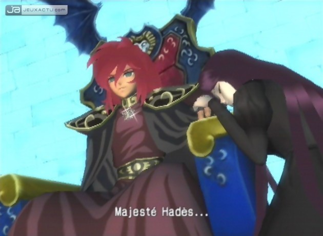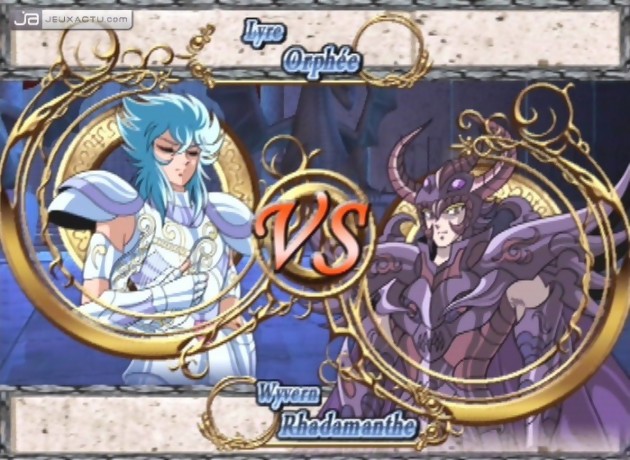 Par ailleurs, côté casting, la jaquette du jeu nous annonce 49 personnages. Un chiffre colossal pour un simple jeu de baston. Mais attention car parmi cette soi-disant tripotée de Chevaliers, seuls 5 personnages sont totalement inédits, à savoir Sion l’ancien Chevalier du Bêlier (qui reste tout de même un doublon de Mü l'autre Chevalier du Bêlier), Radamanthes, Orphée, Minos et Eaque, les deux autres Titans. Pour les autres personnages, on peut d'ores et déjà tablé pour une éventuelle suite du chapitre "Hadès", sic. Quant aux autres Chevaliers, on les connaît déjà de Saint Seiya, Les Chevaliers du Zodiaque : Le Sanctuaire et ce n’est pas l’ajout des armures replis des Chevaliers d’Or ou les trois armures différentes des Chevaliers de Bronze qui vont étancher notre soif de nouveautés. D’autant qu’on a perdu en route Sho le Chevalier d’Acier du Toucan, Misty le Chevalier d’Argent et les Blacks Saints. Mais le fan, le vrai, celui qui n’hésite pas à se lancer dans un achat passionnel, se délectera des longues, très longues séquences de dialogues entres nos preux Chevaliers venus défendre la cause d’Athéna et combattre le méchant Hadès. Seulement voilà, pour celui qui connaît déjà la série, difficile de rester devant autant de blabla à lire, surtout quand la mise en scène est à peine digne d’un stagiaire en audio-visuel. Pire encore, les temps de chargement entre chacun de ces dialogues sont atrocement longs et pénibles. On aurait alors pu se consoler avec les musiques officielles mais encore une fois, Atari n’a pas réussi à obtenir les licences officielles et il faut donc se contenter de musiques alternatives, assez fades il faut bien l’avouer. Mais pour conclure par une note positive, sachez que les voix par défaut sont les voix originales japonaises. Ouf !