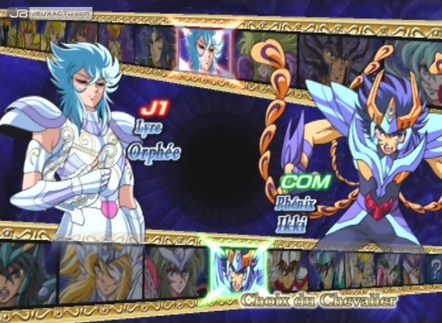 Par ailleurs, côté casting, la jaquette du jeu nous annonce 49 personnages. Un chiffre colossal pour un simple jeu de baston. Mais attention car parmi cette soi-disant tripotée de Chevaliers, seuls 5 personnages sont totalement inédits, à savoir Sion l’ancien Chevalier du Bêlier (qui reste tout de même un doublon de Mü l'autre Chevalier du Bêlier), Radamanthes, Orphée, Minos et Eaque, les deux autres Titans. Pour les autres personnages, on peut d'ores et déjà tablé pour une éventuelle suite du chapitre "Hadès", sic. Quant aux autres Chevaliers, on les connaît déjà de Saint Seiya, Les Chevaliers du Zodiaque : Le Sanctuaire et ce n’est pas l’ajout des armures replis des Chevaliers d’Or ou les trois armures différentes des Chevaliers de Bronze qui vont étancher notre soif de nouveautés. D’autant qu’on a perdu en route Sho le Chevalier d’Acier du Toucan, Misty le Chevalier d’Argent et les Blacks Saints. Mais le fan, le vrai, celui qui n’hésite pas à se lancer dans un achat passionnel, se délectera des longues, très longues séquences de dialogues entres nos preux Chevaliers venus défendre la cause d’Athéna et combattre le méchant Hadès. Seulement voilà, pour celui qui connaît déjà la série, difficile de rester devant autant de blabla à lire, surtout quand la mise en scène est à peine digne d’un stagiaire en audio-visuel. Pire encore, les temps de chargement entre chacun de ces dialogues sont atrocement longs et pénibles. On aurait alors pu se consoler avec les musiques officielles mais encore une fois, Atari n’a pas réussi à obtenir les licences officielles et il faut donc se contenter de musiques alternatives, assez fades il faut bien l’avouer. Mais pour conclure par une note positive, sachez que les voix par défaut sont les voix originales japonaises. Ouf !