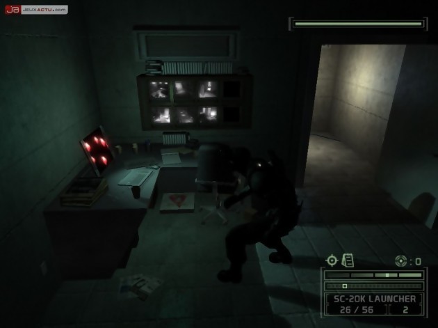 La notion d’infiltration reste tout de même au cœur du gameplay, certains passages exigeant de ne faire aucune victime. La liberté est également accrue dans le level design qui offre de nombreuses solutions face à une situation donnée. Bien souvent, vous pourrez choisir entre trois façons différentes de franchir un passage à haut risque si bien qu’on peut faire des niveaux entiers de manière totalement distincte. De plus, l’apparition du couteau dans l’arsenal de Sam Fisher vous permet de vous frayer votre propre chemin en fendant de la toile ou d’autres matériaux minces. Ajoutez à cela la disparition des aspects pénibles tels que les 3 alarmes disqualifiantes, la possibilité de mettre des coups de genou à la volée et une intelligence artificielle bien plus cohérente et vous comprendrez que c’est un régal d’incarner pour la troisième fois l’agent le plus fameux de la NSA. Le travail d’orfèvre effectué sur la conception des niveaux est tout simplement remarquable et place Splinter Cell Chaos Theory parmi les jeux les plus agréables à jouer de ces derniers mois. Ajoutez à cela une humour de bon aloi, n’hésitant pas à jouer la carte de l’auto-référence ou du clin d’œil à Prince of Persia et vous comprendrez que ce millésime de Splinter Cell possède une personnalité bien plus forte que les épisodes précédents.