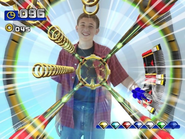 Avec Sonic, Nights et les singes de Super Monkey Ball, il va falloir faire preuve de précision étant donné que ces trois jeux vous demanderont de diriger nos trois héros à l’aide de vos deux bras. Chaque position de vos membres supérieurs correspondant à une direction que prendra le personnage. Guidez-les jusqu’à la ligne d’arrivée sans encombre et ramassez le plus d’items possible en cours de route de façon à remporter un maximum de points. Des points qui, rappelons-le vous permettront d’acheter des produits mais aussi divers objets pour rendre la vie de vos Chaos plus heureuse. Car en sus de cette douzaine de mini-jeux, Sega a eu la charmante idée de proposer aux joueurs en manque de vie sociale ou affective (Ludo par exemple) de s’occuper du jardin des Chaos. Ce jeu bonus étant tout simplement une sorte de Tamagochi grandeur nature avec pour fond d’écran votre silhouette. Pas vraiment excitant, vite ennuyant, on se dirigera plutôt du côté des jeux qui demanderont des prouesses physiques capables de rivaliser avec les combattants de Virtua Fighter ou face aux monstres de House of The Dead. Si le gameplay paraît moins recherché que les autres, il s’avère efficace et par dessus tout, défoulant à souhait. Dans Virtua Fighter, on bloque les coups de son adversaire et on lui décoche coups de poings et coups de pieds jusqu’au KO. Gare toutefois à ceux qui se trouvent autour de vous, susceptibles d’être pris pour cible dans vos mouvements brusques Quant à House of The Dead, l’objectif sera de frapper tous les ennemis à l’écran, en prenant soin de ne pas blesser les jeunes filles sous peine de se prendre un revers de phalanges en pleine poire. La fin de chaque niveau se caractérisera par la présence d’un Boss qu’il faudra éliminer afin de pouvoir continuer à avancer.