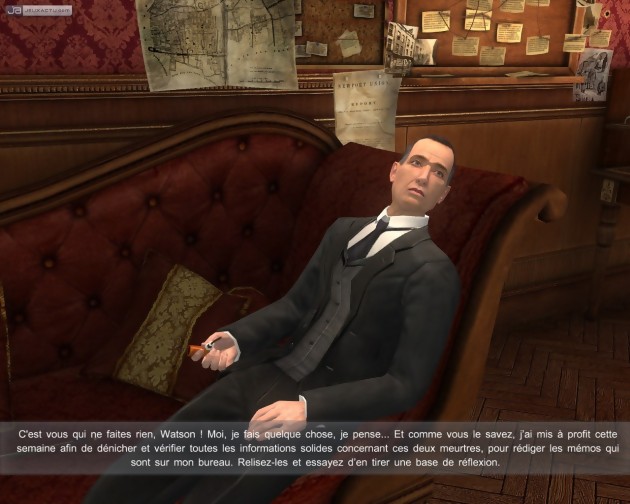 Le tableau de déductions permet par exemple d'organiser les différents indices récoltés sur les lieux des crimes ou via les témoignages. Des liens logiques apparaissent automatiquement entre les différentes cases et aboutissent à des conclusions à choix multiple. Si quelques secondes suffiront au joueur attentif pour sélectionner la bonne option, les têtes en l'air ne seront pas trop pénalisés puisqu'il pourront essayer à loisir diverses combinaisons jusqu'à obtenir un feu vert. L'échelle de temps permet quant à elle de placer les différents évènements recueillis lors des témoignages, et de déduire précisément l'heure des meurtres. Reconstitution des crimes, listes de mobiles ou encore habillage de mannequins complètent la panoplie du parfait détective. Mais pas de panique, on ne vous demande pas un cerveau comparable à celui de Sherlock Holmes. Par souci d'accessibilité, le moment où utiliser chacun de ces systèmes nous est imposé et leur fonctionnement toujours explicité. Manifestement soucieux de ne pas se priver d'un public débutant, le jeu ne tombe pour autant pas dans la niaiserie et mérite bien son classement 16+. Au delà du caractère sanglant de l'histoire et de quelques visuels bien gores, nous avons droit à une intrigue qui évite totalement le politiquement correct. Ainsi, homosexualité déviante, prostitution de bas étage, maladies vénériennes et antisémitisme font partie du décor. Le travail de documentation semble avoir été réalisé sérieusement, et ce sont bel et bien des faits réels qui servent de base à la théorie présentée concernant l'identité du meurtrier. On peut d'ailleurs regretter que la révélation finale ne soit pas plus spectaculaire, mais elle a au moins le mérite d'être crédible. On déplorera plus vivement la présence de chargements courts mais incessants (notamment dès qu'on entre ou qu'on sort d'un bâtiment) et des voix françaises discutables. Pour une fois, la faute n'incombe pas vraiment au jeu des acteurs, qui remplissent très correctement leur office, mais plutôt au casting vocal. Les voix retenues pour Holmes et Watson ne collent guère avec l'idée que l'on s'en fait. Terminons par un mot sur la durée de vie, réduite à deux soirées de jeu si l'on abrège systématiquement les dialogues et qu'on ne prend pas le temps de lire tous les documents fournis. Pour profiter au maximum de l'expérience, ne zappez pas !