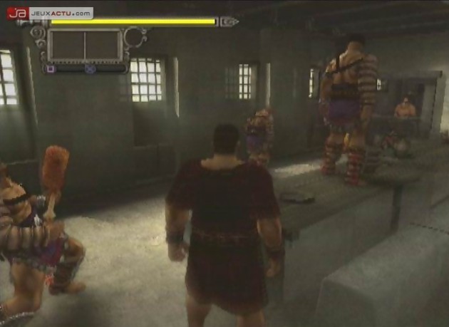Moi perso, j’adore ces hommes virils qui sentent bon la sueur et le sable chaud, mais, hum, tel n’est pas le sujet ici… Direction Agrippa, le centurion nerveux au corps huilé (oui, les gladiateurs s’enduisaient le corps d’huile pour "que ça glisse", pas dans le sens que vous pensez mais uniquement pour que les coups glissent le plus possible sur leur peau). Avec lui, fini les phases délicates pour ne pas se faire repérer. C’est un nerveux, le père Agrippa, il ne lâche rien, teigneux comme un poux. On fonce dans le tas et l’on distribue les coups de glaive et compagnie comme Obélix les baffes sur nos copains romains, c'est-à-dire abondamment et comme un gros bourrin. Cela dit, la comparaison avec notre ami gaulois s’arrête là car ici, c’est hémoglobine et compagnie. Un bras qui vole, une tête qui se détache, un coup de poignard qui s’enfonce dans la colonne vertébrale, on l’aura compris, on n’a pas affaire à un jeu pour les enfants de chœur. D’ailleurs, l’indication "Déconseillé au moins de 18 ans" n’est pas surfaite, alors s’il vous plait, les mères de famille, regardez ce que vous acheter (en même temps de doute que beaucoup de mères de famille consultent le site…), ça évitera de porter plainte à Familles de France style "C’est une honte, mon petit Emile vient de découper le chat avec le couteau à cuisine dans une main et le couvercle de la casserole comme bouclier dans l’autre, tout ça pour faire comme dans Shadow of Rome". C’est tellement bien gore que l’on peut même se servir d’un bras coupé comme d’une arme pour mettre sur la tête d’un rival… Mais pas trop non plus, les différentes armes s’abîment et il faut régulièrement en trouver d’autres pour ne pas se retrouver à combattre à mains nues (pas obligatoirement gênant mais beaucoup plus long pour achever ses adversaires). Les armes, parlons-en. Chaque type d’arme impose un style de combat particulier avec ses faiblesses et ses avantages (une masse est plus lente mais permet de briser les boucliers et armures ennemies). Une grande variété d’armes est présente dans le jeu : armes à main droite (glaive, cimeterre, masse), boucliers (avec ou sans piques), armes à main gauche (dagues, torche), armes à distance (arc, fronde), armes à 2 mains (hallebarde, lance, grande masse) et surtout les armes bonus.