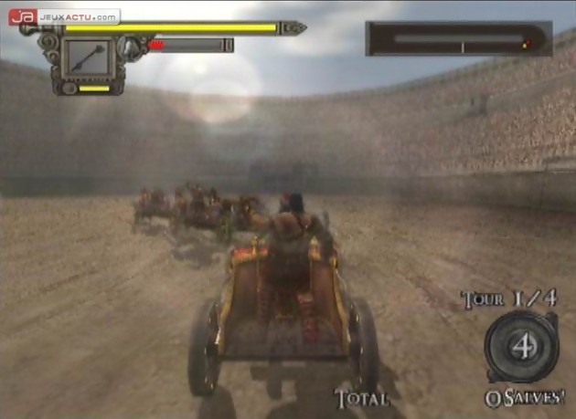 Non, maximus carnaria. Vous l’aurez compris, la partie infiltration vous allèche et là, vous découvrez qu’elle a été bâclée. On sent les bonnes idées mais aucune n’a été portée jusqu’au bout. On a alors qu’une envie : retourner vite vite avec Agrippa, notre musculeux combattant, machine à décapiter, débiter, déboîter, au choix. Les scènes d’action, qu’on aurait pu craindre répétitives, sont suffisamment variées pour éviter la lassitude. Leur principal défaut étant le pic de difficulté que certains niveaux peuvent atteindre (particulièrement dans une phase où il faut atteindre 20 000 salves en 5mn). Shadow of Rome est un jeu dur, qu’on se le dise. Dommage également qu’un petit aspect gestion ne soit pas présent, il aurait été intéressant de collecter de l’argent pour accéder à un arsenal plus grand, de nouvelles armures (une est offerte d’ailleurs à 200 000 salves cumulées) ou encore de l’équipement pour son char (et par l’occasion faire des courses ailleurs qu’au Circus Maximus). Mais ne boudons pas notre plaisir, Shadow of Rome est le seul jeu à l’heure actuelle réunissant des scènes de combat de gladiateur et de char portées par un véritable souffle épique. Là-dessus, adressons notre couronne de lauriers à Capcom. Champion !