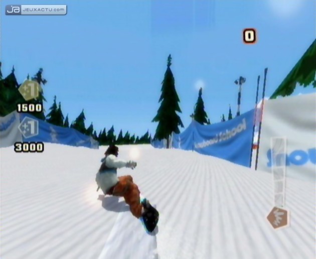 Sachez tout d'abord que s'il existe aussi sur PlayStation 3 et Xbox 360, Shaun White Snowboarding : Road Trip est différent sur Wii, puisque moins abouti graphiquement et offrant un gameplay beaucoup moins pointu. Ici, pas question de simulation, le fun semble avoir été le maître-mot des développeurs canadiens. En solo, le jeu vous emmène faire un tour du monde des meilleurs spots de snowboard et c’est avec plaisir qu’on ira faire un tour du côté des Etats-Unis, du Japon, du Canada, de la Suisse ou bien encore du Chili. Pour chacun de ces pays, plusieurs pistes sont disponibles afin de participer à diverses épreuves. Pour gagner, il faut remplir les objectifs demandés. Ca peut aller d'un nombre d'objets à attraper (des ordures ou des couronnes) à un score de tricks à atteindre en passant par la simple course de vitesse. Avec ça, vous gagnez des tickets donnant accès à de nouvelles épreuves. Pour chacune, il existe aussi un objectif secondaire, histoire de se donner l'impression d'être un cador tout en débloquant des souvenirs. Entre deux descentes, vous pouvez faire un tour dans votre van pour choisir votre rider ainsi que le caméraman qui vous suivra. Chaque personnage a évidemment des compétences différentes, certains étant plus rapides, d'autres plus doués pour les figures par exemple. Chacun a également un bonus quand il est choisi comme caméraman. En effet, en cours de jeu, une jauge se remplit en fonction des couronnes que vous attrapez, des portes que vous franchissez et des cascades que vous exécutez. Une fois pleine, il suffit d'appuyer sur une direction de la croix directionnelle pour déclencher le fameux bonus temporaire qui peut être, entre autres, un score boosté pour les tricks ou encore une adhérence améliorée. A vous de choisir les bonnes personnes en fonction de l'objectif à remplir.