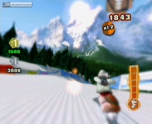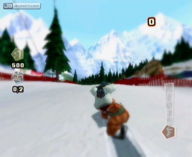 Sachez tout d'abord que s'il existe aussi sur PlayStation 3 et Xbox 360, Shaun White Snowboarding : Road Trip est différent sur Wii, puisque moins abouti graphiquement et offrant un gameplay beaucoup moins pointu. Ici, pas question de simulation, le fun semble avoir été le maître-mot des développeurs canadiens. En solo, le jeu vous emmène faire un tour du monde des meilleurs spots de snowboard et c’est avec plaisir qu’on ira faire un tour du côté des Etats-Unis, du Japon, du Canada, de la Suisse ou bien encore du Chili. Pour chacun de ces pays, plusieurs pistes sont disponibles afin de participer à diverses épreuves. Pour gagner, il faut remplir les objectifs demandés. Ca peut aller d'un nombre d'objets à attraper (des ordures ou des couronnes) à un score de tricks à atteindre en passant par la simple course de vitesse. Avec ça, vous gagnez des tickets donnant accès à de nouvelles épreuves. Pour chacune, il existe aussi un objectif secondaire, histoire de se donner l'impression d'être un cador tout en débloquant des souvenirs. Entre deux descentes, vous pouvez faire un tour dans votre van pour choisir votre rider ainsi que le caméraman qui vous suivra. Chaque personnage a évidemment des compétences différentes, certains étant plus rapides, d'autres plus doués pour les figures par exemple. Chacun a également un bonus quand il est choisi comme caméraman. En effet, en cours de jeu, une jauge se remplit en fonction des couronnes que vous attrapez, des portes que vous franchissez et des cascades que vous exécutez. Une fois pleine, il suffit d'appuyer sur une direction de la croix directionnelle pour déclencher le fameux bonus temporaire qui peut être, entre autres, un score boosté pour les tricks ou encore une adhérence améliorée. A vous de choisir les bonnes personnes en fonction de l'objectif à remplir.