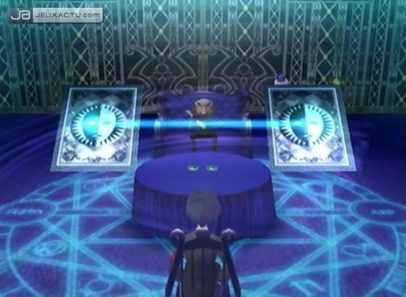 Evidemment, s’appuyer sur les faiblesses d’un adversaire ne se fait pas avec une arme blanche, mais bien à l’aide des Personas. En s’administrant un headshot d’une balle de leur Evoker, les membres du SEES font appel à ces créatures reflets de l’âme pour lancer une de leurs attaques spéciales. S’entourer de Personas aux spécificités bien distinctes est donc important, d’autant plus que seul le héros peut bénéficier des services de plusieurs d’entre-eux. En effet, il est le seul directement jouable en combat, ce qui nous oblige parfois à nous en remettre au Bon Dieu plutôt qu’à l’I.A. pas toujours efficace des compagnons, et ce, malgré un système d’instructions à donner. De même, les boss prendront parfois un malin plaisir à nous rosser en enchaînant les sorts de groupe, tandis qu’ils se feront plus doux que du coton au second essai. Etrange. MegaTen oblige, Persona 3 nous initie très vite aux fusions de nos animaux de compagnie. Un petit tour par le Velvet Room, et le mystérieux Igor fera apparaître après deux ou trois petits sacrifices un Persona plus puissant. Et c’est précisément en ce point que l’on trouve le fruit du croisement des deux phases de jeu. En gros, chaque Persona et chaque Social Link est affilié à une Arcane du tarot. Comme vous l’aurez sans doute compris, de la force que vous aurez réussi à tirer de vos relations développées durant la journée résulte un bonus de points d’expérience dont les bénéfices seront récoltés durant une fusion, à la seule condition que l’Arcane du Persona obtenu soit identique à celui d’un des Liens Sociaux que vous entretenez. L’interaction en elle-même est simplissime, mais a été implémentée avec pas mal d’intelligence, puisqu’il nous oblige à négliger un minimum de PNJ, et à nous faire participer à un maximum d’activités. De plus, privilégier une seule Arcane est inutile, puisque le jeu ne permet de faire appel à des Personas qu’en fonction de notre propre niveau, ce qui signifie qu’un gonflement de stats trop important pourrait le rendre inutilisable, et pousserait le vieux Igor à le renvoyer dans l’oubli. Malin.