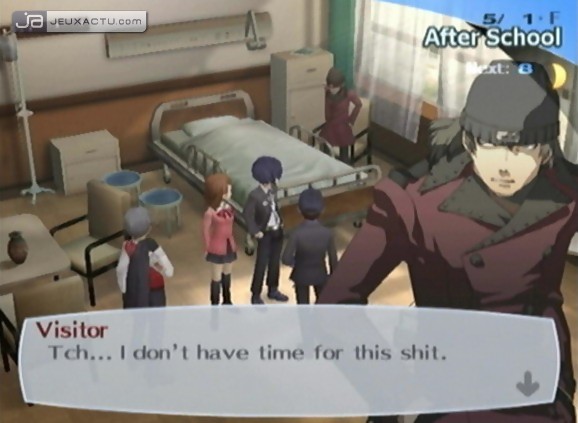 Vous l’aurez sûrement compris, avec Shin Megami Tensei : Persona 3, préparez-vous à laisser au placard une grande partie des codes du RPG japonais tel que vous l’avez connu jusqu’à présent en Europe. Persona 3 réussit l’étrange conjugaison, l’exotique mariage de deux genres typiquement nippons : la simulation de vie lycéenne et le Dungeon-RPG. Deux phases qui semblent bien distinctes aux premiers abords, mais qui couvent pourtant une interaction essentielle sur laquelle nous reviendrons plus tard. Le titre nous impose donc un déroulement bicéphale pour progresser, bien qu’assez libre dans les faits. La journée, c’est la vie d’étudiant qui prime avec un agenda plutôt garnis qu’il faudra apprendre à gérer. En plus des cours dispensés quotidiennement, le titre nous propose une somme assez conséquente d’activités et de relations à entretenir, le tout dans un univers suffisamment convaincant pour que l’on se pique au jeu. Les amateurs de manga et de japanimation n’évolueront d’ailleurs pas en terres inconnues, le titre s’appliquant à nous délivrer un semblant d’adolescence à la japonaise, ponctué de ses tracas, de ses événements, de ses hobbies, le tout orchestré par une galerie de personnages à peine clichés mais ô combien attachants. Les célèbres clubs présents dans chaque établissement scolaire japonais répondent présent, les amourettes avec les très solennels rendez-vous également, sans compter sur les périodes d’examens auxquels il faut participer. La sortie des cours est logiquement chargée, avec son petit lot d’activité et de dates à effectuer. Cependant, gare à ne pas froisser les égos en acceptant plusieurs rancards au même moment, forcément synonyme de posage de lapin. Le titre tire indéniablement sa force de son univers contemporain, et du rythme imposé par le l’année scolaire japonaise. Les examens et autres voyages par exemple se chargent toujours de casser le côté forcément répétitif du titre. En dehors de ces impératifs liés au calendrier, le jeu octroie une bonne dose de liberté pour conduire cette phase de gameplay, ce qui nous oblige assez vite à nous organiser, sous peine de ne pas progresser efficacement. En effet, faire grimper le Social Link qui nous lie à une personne, ou augmenter ses caractéristiques – que sont l’Academics, le Charm et le Courage – est primordial une fois le Dark Hour arrivé, mais les développer à outrance ne se fera pas sans une contrepartie, logiquement matérialisée par la fatigue ici. Outre l’impossibilité d’étudier correctement, cet affaiblissement physique bridera le héros une fois dans les interminables couloirs du Tartarus, puisque la probabilité d’attaques manquées s’en retrouvera augmentée.