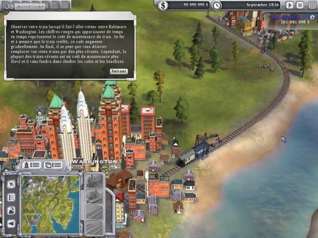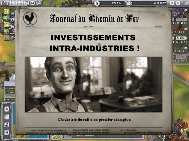 En premier lieu, il faut rapidement analyser le jeu de l’offre et de la demande, quels sont les besoins des villes, les matières premières et les éventuels ateliers de production. Généralement, on commence par transporter dans un premier temps du courrier et des passagers, puis on s’oriente rapidement vers le transport de frets, beaucoup plus lucratif. Certaines matières premières nécessitent parfois d’être transformées et le transport des voyageurs/courriers devant être le plus rapide possible pour amasser plus d’argent. Il faut donc penser à bien optimiser le réseau et le nombre de wagons constituant chaque voyage. Au fur à mesure qu’une ville s’agrandit, elle a de nouveaux besoins et dispose éventuellement de nouveaux ateliers de production. Pour se faciliter la tâche, on peut également construire le bâtiment de son choix mais il faut y mettre le prix. On peut également acheter aux enchères un édifice déjà existant et profiter de ses résultats économiques, une manière de rentabiliser une route commerciale. Pour attirer le chemin de fer, certaines villes proposent ponctuellement des défis et le premier à le réaliser gagne une somme d’argent substantielle. Mais globalement, jouer les minutieux et se perdre dans le micro-management est finalement inutile puisque l’argent rentre très rapidement dans les caisses avec un effort minime. Pour se démarquer de la concurrence, on pourra tenter de se procurer l’exclusivité des brevets d’invention aux enchères. Proposés ponctuellement, ces derniers disposent généralement de bonus non négligeables et sont valables durant une dizaine d’années avant de tomber dans le domaine public. En progressant dans le temps, de nouvelles locomotives plus perfectionnées seront disponibles pour tous les joueurs. Ils sont généralement le signal de départ pour renouveler un parc de machines vieillissantes. Un investissement lourd qu’il ne faut pas hésiter à faire car le coût de maintenance d’une locomotive augmente proportionnellement à son âge.