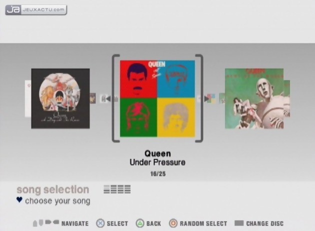 SingStar ABBA, l’arme absolue des soirées karaoké entre amis va devoir faire face à l’invasion d’un autre groupe mythique des années 70/80. Queen, menée d’une main de fer (enfin façon de parler) par un Freedie Mercury, aussi charismatique qu’énigmatique, a donc été choisi pour relancer la carrière de la franchise SingStar, toujours aussi populaire auprès d’un grand public en mal de chansons légendaires. Les micros peuvent chauffer, les costumes aussi, Sony Computer Entertainment nous propose avec ce disque, disponible aussi bien sur PlayStation 2 que PlayStation 3, pas moins de 25 morceaux (25 chansons originales + 5 medleys) du quatuor britannique. Another One Bites The Dust, Bohemian Rapshody, Breakthru, Crazy Little Think Called Love, Don’t Stop Me Now, I Want It All, I Want Ti Break Free, One Vision, Somebody To Love, Under Pressure, We Are The Champions, We Will Rock You, la liste est longue et le nombre de hits en puissance assez hallucinant. Evidemment, pour espérer chanter comme le bon vieux Freedie et performer comme lui, il va falloir se chauffer les cordes vocales de bon matin. Heureusement, il existe plusieurs degrés de difficulté qui permettront aux novices de ne pas trop passer pour des bleus. En revanche, vous ne serez pas surpris du fait que les développeurs ne sont toujours posés la question du renouvellement. L’habillage, les modes de jeu, la navigation ou bien encore les menus, rien n’a changé depuis les débuts de la licence lancée voilà maintenant cinq ans. Heureusement, on se console très facilement par la présence des clips d’origine, avec la qualité d’origine, qui prouve bien que la mode de l’époque était placée sous le signe du grand n’importe quoi. De la petite moustache de Mercury à la touffe africaine de Brian May en passant par les bottes de John Taylor, tout respire le kitsch à plein nez, et c’est un véritable coup de boule stylisée qu’on se prend en pleine poire. Manque de bol, on aime ça.