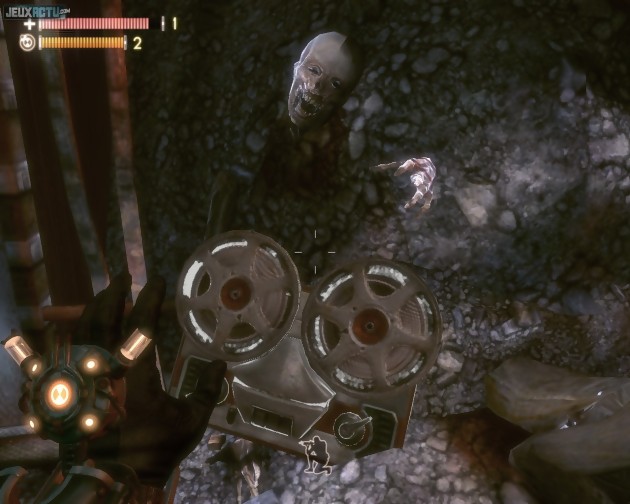 Tout cela rappelle fortement BioShock ! On pourrait s'en réjouir car la référence est excellente, mais au final une assez désagréable impression de déjà-vu l'emporte. Il faut dire que Singularity utilise le même moteur 3D (l'incontournable Unreal Engine 3) que le hit de 2K Games, et l'utilise de manière très proche. Même l'interface semble un peu trop familière. A l'usage, ce manque de personnalité s'avère carrément être une constante, et les emprunts à telle ou telle série sont nombreux. Le gameplay rappelle souvent celui de Half-Life 2 et l'on croise le chemin d'une Kathryn qu'on jurerait être la sœur d'Alyx. Les petits films de propagande reprennent le ton naïf de ceux des différents épisodes de Fallout, et de BioShock par la même occasion. Le principe des films d'archive laissés par des scientifiques d'une station secrète installée sur une île mystérieuse évoque immanquablement Lost. L'architecture et l'ambiance soviétiques font irrémédiablement penser à Metro 2033 et S.T.A.L.K.E.R. : Shadow of Chernobyl. L'interface holographique des machines permettant d'améliorer l'équipement et les capacités du héros a très certainement été influencée par Dead Space, dont Singularity reprend également le principe du guidage à la demande. Il suffit en effet d'appuyer sur une touche pour que des traces de pas s'affichent au sol et nous indiquent clairement la voie à suivre. Quant aux possibilités de manipulation du temps, que nous allons détailler plus bas, elles ressemblent fort à celles déjà aperçues dans TimeShift. Comble de la malchance, du manque d'imagination, ou du plagiat par anticipation (allez donc savoir...), certains ennemis semblent même calqués sur ceux du futur Rage. Mais mettre sur le compte du hasard la présence de l'ensemble de ces références ne serait pas raisonnable. Plutôt qu'un défi aux statistiques, il s'agit manifestement d'un système érigé en principe de game design : celui d'une reprise forcenée et méthodique des meilleures idées apportées ces dernières années par la concurrence. Avec de tels ingrédients, la soupe ne peut certainement pas être mauvaise. Mais elle manque tout de même de saveur et d'originalité.