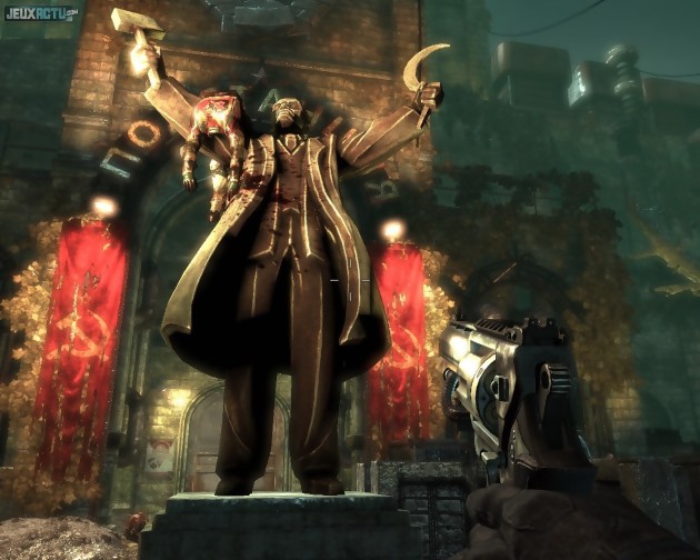Tout cela rappelle fortement BioShock ! On pourrait s'en réjouir car la référence est excellente, mais au final une assez désagréable impression de déjà-vu l'emporte. Il faut dire que Singularity utilise le même moteur 3D (l'incontournable Unreal Engine 3) que le hit de 2K Games, et l'utilise de manière très proche. Même l'interface semble un peu trop familière. A l'usage, ce manque de personnalité s'avère carrément être une constante, et les emprunts à telle ou telle série sont nombreux. Le gameplay rappelle souvent celui de Half-Life 2 et l'on croise le chemin d'une Kathryn qu'on jurerait être la sœur d'Alyx. Les petits films de propagande reprennent le ton naïf de ceux des différents épisodes de Fallout, et de BioShock par la même occasion. Le principe des films d'archive laissés par des scientifiques d'une station secrète installée sur une île mystérieuse évoque immanquablement Lost. L'architecture et l'ambiance soviétiques font irrémédiablement penser à Metro 2033 et S.T.A.L.K.E.R. : Shadow of Chernobyl. L'interface holographique des machines permettant d'améliorer l'équipement et les capacités du héros a très certainement été influencée par Dead Space, dont Singularity reprend également le principe du guidage à la demande. Il suffit en effet d'appuyer sur une touche pour que des traces de pas s'affichent au sol et nous indiquent clairement la voie à suivre. Quant aux possibilités de manipulation du temps, que nous allons détailler plus bas, elles ressemblent fort à celles déjà aperçues dans TimeShift. Comble de la malchance, du manque d'imagination, ou du plagiat par anticipation (allez donc savoir...), certains ennemis semblent même calqués sur ceux du futur Rage. Mais mettre sur le compte du hasard la présence de l'ensemble de ces références ne serait pas raisonnable. Plutôt qu'un défi aux statistiques, il s'agit manifestement d'un système érigé en principe de game design : celui d'une reprise forcenée et méthodique des meilleures idées apportées ces dernières années par la concurrence. Avec de tels ingrédients, la soupe ne peut certainement pas être mauvaise. Mais elle manque tout de même de saveur et d'originalité.