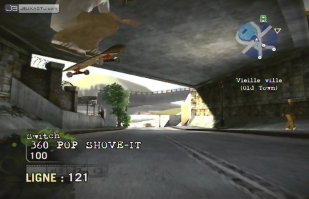 La ville est suffisamment vaste et éclectique pour proposer différents quartiers tous différents grâce à leur architecture. Vous commencerez à faire vos preuves dans la banlieue bon chic bon genre de San Vanelona avant d’atteindre la zone des HLM et de poursuivre votre carrière dans le centre-ville ou dans la vieille ville. Pour les moins feignants des skateurs, faire le tour de la cité prendra de longues minutes mais sachez qu’il est toujours possible de prendre le métro pour se rendre ailleurs ou passer directement par le menu carte afin de découvrir les nombreuses épreuves qui vous attendent. En plus des classiques "Best Trick Contest" où le but est de réaliser le meilleur enchaînement de figures dans le temps imparti, vous pourrez vous mesurer à d’autres skateurs en quête de gloire en mode Jam, réaliser vos propres films grâce à votre caméraman attitré, poser pour un célèbre magazine de skate, coller aux basques d’un skateur en mode "Suis-moi", exécuter une séquence de tricks sur un Spot ou jouer à une alternative du Pendu avec l’option S.K.A.T.E.. Ici, le but est de répéter les tricks d’un joueur ou au contraire d’en créer des bien compliqués pour malmener son concurrent, sans jamais reproduire la même figure. L’imagination prédomine donc surtout que cette épreuve se focalise essentiellement sur les flips et les rotations. Les grabs sont proscrits. A l’inverse, lorsque vous discuterez avec un skateur pro ce dernier vous demandera un enchaînement bien particulier sur tel ou tel module. Et il faudra respecter à la lettre ses consignes pour être sûr de signer un contrat de sponsoring ou de décrocher la Une d’un magazine. Les épreuves sont suffisamment variées pour vous faire évoluer comme bon vous semble au sein de "The Skateboard Mag". Parallèlement à ce canard, vous pouvez travailler pour "Trasher Magazine". Ici les épreuves sont sensiblement les mêmes si ce n’est le challenge Deathrace qui mise à fond sur la course de vitesse. Et que faire pendant que vous rejoignez une nouvelle étape ? San Vanelona regorge de piscines, d’écoles, de parcs, de places, d’établissements privés pour découvrir de nouveaux spots ou des défis pro en compagnie de quelques légendes telles que Danny Way, Pat Duffy, Mike Carroll, Mark Gonzales, Paul Rodriguez, PJ Ladd ou Chris Cole. C’est en gagnant leur confiance que vous approcherez de nouveaux sponsors mais pour y arriver il faudra réussir leur challenge de tricks avec ou sans limite de temps. Parallèlement à ces découvertes qui feront grimper votre côte de popularité, vous rencontrerez sur votre chemin de nouvelles boutiques pour faire le plein de vêtements. Mais très franchement, San Vanelona malgré sa grandeur manque singulièrement de vie. Quelques bagnoles ici ou là pour vous défoncer la caboche si vous traversez en dehors des clous, quelques vigiles pour vous faire passer l’envie de skater dans des endroits interdits tout en vous fauchant quelques dollars, des piétons bien agaçants qui se sentent obligés de marcher juste devant vous et de rares skateurs qui vous envoient au tapis si vous grindez leur spot, ça reste insuffisant. Pire encore, lorsqu’il y a un peu trop de monde dans le décor, c’est la gamelle assurée.