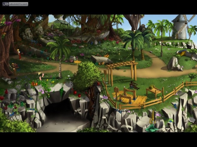 Premier projet PC entièrement réalisé par les jeunes Français de Wizarbox, assistés pour l’occasion de Steve Ince, script et producteur de plusieurs épisodes des Chevaliers de Baphomet, So Blonde est un jeu d’aventure étonnamment frais, mais également assez mal fichu. Techniquement imparfait, offrant des décors en 2D franchement mignons et bourrés de détails amusants et de références débiles (des chevaliers pendus qui font "Ni" dans une lande désolée, une trappe métallique en pleine jungle, …), il affiche en parallèle des éléments en 3D fort vilains. Taillés à la hache dans des textures grossières, les personnages manquent à la fois de charisme et d’agilité. Une souplesse qui fait également défaut à cette aventure, assez drôle au demeurant, du moins pour qui aime l’humour potache, mais écrite un peu rapidement et rallongée de manière très artificielle. Point’n’click dans la plus pure tradition du genre, So Blonde consiste essentiellement à trouver des objets dans les jolis décors, à les utiliser plus loin, soit tel quel, soit en les combinant avec d’autres bricoles, et à taper la discute avec les quelques habitants de l’île. Tentant de moderniser un peu cet antique concept, les développeurs ont introduit quelques features utiles dans leur produit. Ainsi, afin de ne pas perdre votre temps dans une chasse au pixel stérile, vous pouvez afficher tous les éléments interactifs de l’environnement dans lequel vous vous trouvez en appuyant sur la barre Espace. Ensuite, pour vous divertir un peu plus, les Franciliens ont mis au point tout un tas de mini-jeux débiles, souvent présentés sous la forme d’un Game & Watch et offrant des gameplay calqués sur les bidules électroniques des années 80, de Donkey Kong à Space Invaders. Passages obligés, puisqu’ils vous permettent de récupérer des objets indispensables à la poursuite de votre quête, ces interludes – souvent aussi maniables que leurs vénérables ancêtres – peuvent toutefois être bouclés automatiquement si vous ne vous sentez pas l’âme nostalgique. Ces bonnes idées ne suffisent toutefois pas à masquer quelques défauts rédhibitoires. Divisé en quatre chapitres, So Blonde peine franchement à tenir la distance. Rigolotes et dynamique, les deux premières parties se terminent avec plaisir, alors que les deux suivantes se révèlent fort laborieuses et consistent pour l’essentiel à faire mille et un allers-retours entre les quatre coins de l’île. Vous partez chercher un objet au nord, le remettez à un personnage au sud, qui se rend alors compte qu’il lui faut un autre élément qui se trouve encore au nord. Les zones étant séparées par des temps de chargement (assez brefs, heureusement), vous passerez bien du temps à regarder les écrans de loading durant les dernières heures d’une aventure qui se prend de plus en plus au sérieux à mesure que Sunny s’éveille à la dure réalité de la vie. La vengeance ludique des blondes attendra encore un peu…