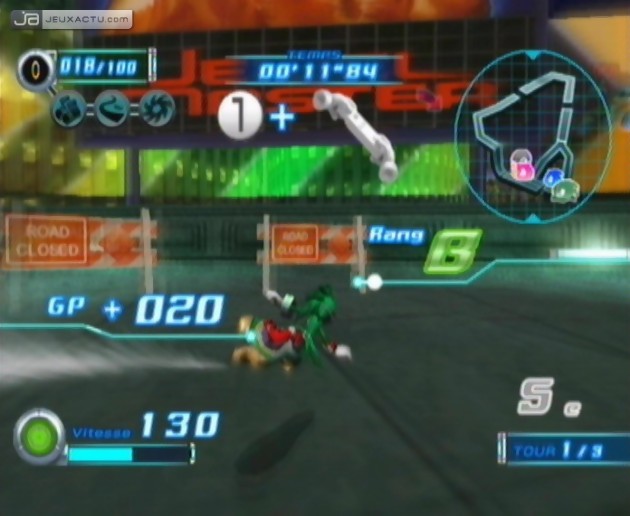 Soyons clairs : le gameplay de Sonic Riders : Zero Gravity est au bout du rouleau. Alors que les fautes de goût commises dans le premier opus auraient du permettre de rectifier le tir, on se retrouve avec la même approximation au moment d'aborder les virages en épingle. Pire encore, la gestion des sauts se veut totalement hasardeuse, avec un timing qui varie d'un tremplin à l'autre, sans que l'on sache vraiment pourquoi. Même constat pour les grinds, qui nécessitent des commandes pas suffisamment intuitives pour s'intégrer parfaitement pendant le déroulement de la course. L'intégration, c'est aussi le sujet qui fâche au moment d'évoquer les acrobaties; elles donnent la désagréable impression de faire perdre du temps, ce qui est plutôt embêtant lorsque l'on souhaite empiler les Turbo PG. Par ailleurs, l'interface de Sonic Riders : Zero Gravity manque singulièrement de clarté en affichant les différentes informations de façon désordonnée. Carte du parcours, nombre de rings récoltés, pièces de la gear, compteur, jauge PG, position du pilote, nombre de tours... Il aurait été préférable de laisser le choix au pilote de sélectionner lui-même les paramètres qu'il souhaite contrôler pendant la course, comme cela s'est déjà vu; d'autant plus que l'on ne prête pas forcément attention aux upgrades de son surf, un comble pour un jeu qui mise la majeure partie de son gameplay sur cet élément. Peu confortable sur PS2 et avec une manette GameCube, Sonic Riders : Zero Gravity devient écoeurant si l'on opte pour une prise en main avec la Wiimote. Tenue à l'horizontale - ou à la verticale pour les plus allumés -, la télécommande s'avère peu précise, avec un énorme temps de latence à chaque mouvement. Du coup, négocier les virages comme un chef devient mission impossible, surtout lorsque la gestion des collisions est aussi imparfaite. Pour revenir deux secondes sur les différentes parties de l'overboard, on ne comprend pas trop pourquoi la Sonic Team n'a pas conservé l'ancien système d'upgrade, onéreux certes puisqu'il fallait passer par le magasin, mais plus carré que l’actuel.