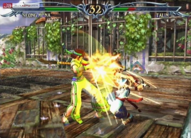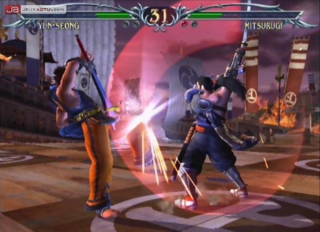 Le protocole de déchope (s'enlever d'une projection) a lui aussi été rectifié pour apporter un peu plus de complexité aux débats. Comme les connaisseurs le savent, il existe deux types de projection : les projections en A (Carré) et les projections en B (Triangle). Jusqu'à présent, il suffisait d'appuyer assez rapidement sur A ou B pour se dépétrer d'une projo A ou B. Maintenant, il faudra compter sur trois déchopes différentes. Plantons le décor de l'exemple : Astaroth tente une projection sur Taki. Si elle appuie tout de suite après la tentative de chope d'Astaroth, elle prend directement l'avantage sur lui en le faisant légèrement reculer; Taki peut attaquer directement derrière sans aucun temps mort. Si elle appuie avec un timing classique, chaque personnage reprend sa place initiale sans que l'un ou l'autre prenne l'avantage. Enfin, si elle déchope de façon tardive, elle se retrouve sur les fesses. L'utilisation du 8-Way-Run a également subi quelques changements assez pénalisants pour ceux qui en abusaient jusque-là. En effet, si on se mange un début de combo alors que l'on est en phase de step (décalage), tous les autres coups derrière sont garantis en counter; alors qu'auparavant, on pouvait se prendre maximum les deux premiers coups avant de pouvoir bloquer les autres. Ce qui risque de différencier les version US, PAL et JAP, ce sont les bugs. A l'instar de Soul Calibur II, certaines manipulations spécifiques permettent de sortir des coups anormaux qui engendrent des situations ultra-handicapantes pour ceux qui les subissent. Ok, certains de ces fameux bugs nécessitent des conditions pointues et ne sont pas forcément faciles à placer, mais ça fait bien mal sur le coup. Si la logique se poursuit, c'est la version JAP qui sera finalement la moins buggée car Namco procède à des refontes à chaque sortie. Certaines attaques, qualifiées d'abusées, offrent aussi des situations confortables voire royales. Nous n'allons pas tous vous les détailler ici, mais Mitsurugi et Setsuka n'ont vraiment pas à se plaindre !