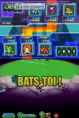 Chaque Spectrobe peut évoluer successivement deux fois pour atteindre le stade adulte puis évolué. Ils deviennent chaque fois beaucoup plus forts et plus imposants. A leur naissance, les Spectrobes sont en effet chétifs et ne sont pas en mesure de combattre. En revanche, ils sont indispensables pour la recherche d’éléments souterrains. Caractérisé par la portée à laquelle ils peuvent les repérer autour d’eux, il suffit d’appuyer sur le bouton R ou sur la créature avec le stylet pour qu’un halo de lumière enveloppe cette dernière. Si un élément brillant apparaît, on peut alors cliquer dessus pour commencer à jouer les archéologues. Un jeu de couleur nous renseigne sur à quoi l’on peut s’attendre : doré pour les fossiles, gris pour les minérocs et enfin arc-en-ciel pour les cubes. Ces derniers contiennent des informations spécifiques sur les Spectrobes et déverrouilleront certaines fonctionnalités (activer la connection wi-fi de la DS, l’incubateur, etc.) ; les Minérocs sont une nourriture appréciée des Spectrobes. Leur permettant d’améliorer leur minergie dans une ou plusieurs compétences, il ne faut pas se priver pour les gaver autant que possible. En effet, pour passer au niveau supérieur dans une de leur compétence (attaque, défense, points de vie), il est nécessaire que leur niveau de minergie dans celle-ci atteigne 100%. A la manière d’un Trauma Center, c’est votre dextérité et votre délicatesse qui détermineront la bonne réussite de ces mini-phases archéologiques. La pression augmentant au fur à mesure que l’on maintient le stylet sur une même position, mieux vaut donc être très attentionné et y aller par petits coups afin de ne pas abîmer les précieuses reliques. Pas moins de 95% de la surface de l’objet doivent être déterrés pour que l’on puisse le récupérer. Chaque excavation réussie augmente son niveau d’expérience et donc diminue les probabilités de casse. Dans le même style, on peut également se procurer plusieurs outils plus précis spéciaux moyennant finance pour par exemple souffler sur l’écran pour éliminer quelques débris sans crainte. De plus, selon l’état de conservation du fossile, celui-ci pourra avoir conservé jusqu’à 80 % de son minergie ainsi qu’un accessoire élémentaliste. Une motivation supplémentaire de ne pas relâcher son attention. De retour au bercail, le laboratoire au sous-sol du vaisseau permet de leur redonner la vie. Pour cela, il faut maintenir durant 3 secondes le niveau de sa voix à un niveau déterminé par une jauge. Il ne nous reste plus qu’à demander à notre ami Laurely Birba s’il pense avoir la classe avec dans le métro parisien…