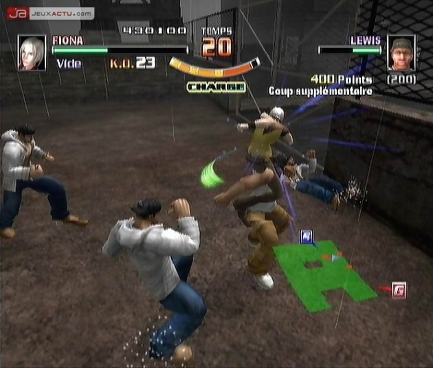 La descente aux enfers de Spikeout Battle Street commence peu après la scène d’introduction présentant l’histoire insipide du jeu. Une guerre des gangs fait rage sur l’île de Diesel Town depuis plus de dix ans. L’équipe Inferno s’est faite botter les fesses par les beaux gosses de la Team Spike. Mais son leader, Michael, est bien décidé à conquérir la ville et revient donc à la charge avec une armada de bad boys. Cependant, il va se heurter à un nouveau groupe dirigé par le fils du célèbre Spike répondant au nom de Spike Jr. Original vous avez dit ? Cette nouvelle équipe se compose de quatre protagonistes pas charismatiques pour un sou. Deux gars et deux gonzesses font office de protecteurs : Spike Jr, Min Hua, Jackal et Fiona. Chacun possède son propre style de combat. Boxe, combat de rue, Ba Ji Quan, mais la palme du meilleur style est décernée à Fiona. Il s’agit d’un ersatz de taekwondo, pour reprendre les mots de Sega : « coups de pied façon taekwondo ». Cela annonce bien l’aspect brouillon qui s’émane du titre. En effet, la maniabilité est loin, mais alors très loin, d’être exemplaire. Les personnages possèdent à tout casser une quinzaine de coups différents allant du simple bourre-pif aux projections et aux attaques spéciales. Les combos sont plus que simplistes puisqu’ils n’impliquent que l’utilisation de deux boutons. Par conséquent, les combos sont guère impressionnants car n’excédant pas les 6 ou 7 coups d’affilée. Grosso modo, on tapote comme un forcené les boutons X et Y en dirigeant le stick analogique vers l’ennemi le plus proche, sans vraiment prêter attention à l’action tellement celle-ci est mollassonne. Même les super attaques n’arrivent pas à nous procurer un soupçon de plaisir. Leur simple intérêt réside à se débarrasser des adversaires qui vous ont encerclés ou entamer de façon importante la jauge de santé des boss.