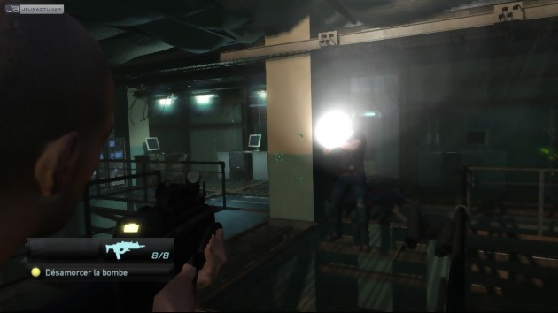 Rien de bien compliqué pour un triple sauveur du monde, mais celui-ci va toutefois devoir donner un peu plus de sa personne que d’habitude s’il veut gagner la confiance de ses nouveaux partenaires. Première étape, indispensable, la prison. C’est dans le cadre accueillant d’un complexe de haute-sécurité que Sam doit se lier avec Jamie, l’une des éminences grises de la JBA et, après six mois de promiscuité contrainte, se faire la belle en sa compagnie. Pas le temps de respirer que vous voilà déjà confiné dans le QG de l’organisation terroriste, plus ouvert mais pas moins sinistre que votre précédent lieu de villégiature. Ce complexe, vous le visiterez à quatre reprises au cours de votre aventure. De nouveaux objectifs, et de nouvelles zones, s’ouvrent à chaque fois, et vous devez en profiter pour servir au mieux, non seulement votre nouvel employeur, mais également vos supérieurs de la NSA. Le brave Lambert, votre patron de toujours, auquel il va arriver quelques bricoles, n’oublie ainsi jamais de vous communiquer des ordres. Tâches ménagères d’un côté (déplacer un cadavre, armer des mines ou s’entraîner au tir font partie de vos obligations en tant que recrue de la JBA), contre infiltration pure (prélèvements d’empreintes, récupération d’informations confidentielles pour le compte de l’agence) de l’autre, votre double casquette a de bons et de mauvais côtés, auxquels vous ne pourrez que difficilement échapper. S’il est recommandé de contenter les deux camps dans l’enceinte du QG, sur le terrain, Sam ne pourra satisfaire les exigences, évidemment contradictoires, de ses deux employeurs.