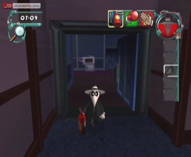 Premier jeu en écran splitté, le jeu original avait en quelque sorte révolutionner les parties multijoueur des jeux vidéo. Quant à ce nouveau cru, il se contentera de rejoindre directement notre poubelle. Changeant clairement d’orientation, Spy Vs. Spy privilégie plus l’action et la plate-forme au détriment de la réflexion. S’il s’agit toujours de piéger son adversaire en disséminant des bombes et autres objets loufoques un peu partout, vos neurones ne seront absolument pas mis à l’épreuve durant toute la progression de l’aventure, puisque toutes les opérations à effectuer sont indiquées au préalable. C’est là que l’on touche au premier gros défaut du titre. Que l’on parle des différents environnements du jeu ou encore des possibilités plus que restreintes d’interactions avec le décor, Spy Vs. Spy confine en effet le joueur dans une grande linéarité. Il se permet quelque fois une petite entorse à ses principes en nous laissant "légèrement" plus libre, mais prend tout de même soin de nous laisser dans le flou avec des objectifs à accomplir qui sont loin d’être clairs voire totalement incompréhensibles. La difficulté est vraiment mal dosée, si bien que l’on passe d’un extrême à l’autre, c'est-à-dire d’un passage d’une facilité affligeante à une situation un peu plus délicate. Quant aux combats, ils manquent clairement de dynamisme. Peut-être la faute à une intelligence artificielle dépassée, la mollesse générale des différentes actions, une caméra un peu capricieuse ou encore la démarche de kéké de votre personnage. Qui sait…