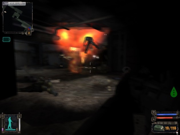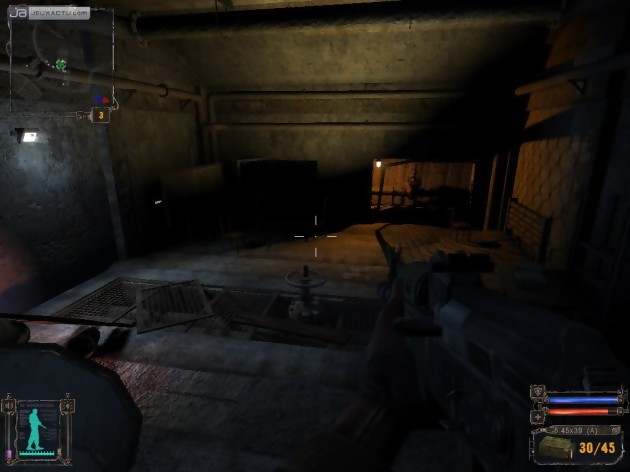 Si vous avez parfois besoin de ce genre de coups de pouce, c’est plutôt vous qui allez occuper la fonction d’homme providentiel. Certains habitants de la Zone ont en effet toujours quelque chose à vous demander, une mission à vous proposer. De la simple récupération d’un objet (perdu dans une zone malfamée) au nettoyage pur et simple (d’une zone malfamée) en passant par un échange de documents avec un individu isolé (dans une zone malfamée), chacun ira de sa demande particulière, vous promettant gloire, objets rares et argent en cas de réussite. Des récompenses qui vous seront bien utiles : reconnus par vos pairs, vous accéderez à des secteurs de plus en plus dangereux de la Zone ; riche, vous pourrez vous offrir le kit du parfait petit chasseur : munitions, médikits, armes d’assaut. Chaque Stalker possède en effet un sac à dos dans lequel il peut stocker de l’équipement. Des restrictions de poids vous empêcheront de vous trimballer toute une armurerie nord-américaine, mais vous aurez largement la place de conserver au chaud vos calibres préférés. Du moins au bout d’une demi-douzaine d’heures de jeu. Auparavant, vous devrez lutter contre les éléments à l’aide de vieilles pétoires capricieuse et redécouvrirez ce que c’est que de galérer dans un FPS.