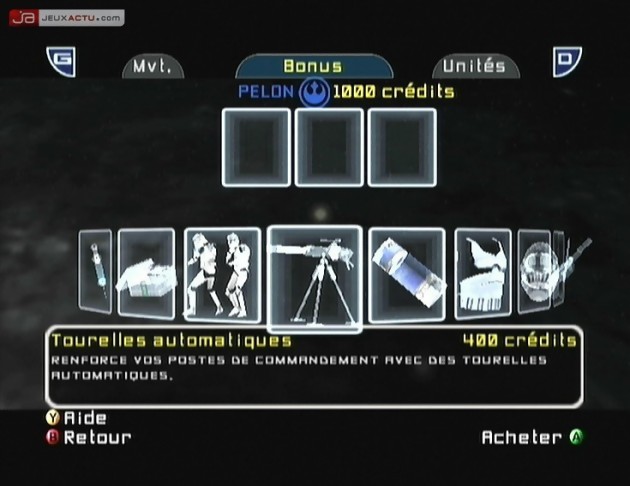 L’objectif premier de chaque mission est de diminuer l’armée ennemie en lui volant ses checkpoints de régénération, ainsi au fur et à mesure du combat les troupes s’amenuiseront jusqu’à la défaire totale. Ceci dit, Pandemic Studios a tout de même peaufiné son scénario en nous obligeant à respecter certains objectifs comme la destruction de certains véhicules, la récupération d’objets, la protection des défenses ou le maintien d’une position durant un certain laps de temps. Selon les consignes, il faudra bien choisir son soldat et sa technique d’approche. Plusieurs classes existent selon la faction intégrée. Chaque armée possède d’emblée 2 unités disponibles. Il ne tiendra plus qu’à vous de faire vos preuves sur le terrain en glanant des points de combat afin de débloquer certaines unités spéciales. Pour généraliser, sachez que vous avez droit aux soldats lourdement armés, aux fantassins polyvalents, aux tireurs d’élite, aux éclaireurs et aux techniciens. Stormtrooper, Espion Botham, Guerrier Wookie, Commandant Clone, Magnagarde ou Dark Trooper, chaque personnage possède un arsenal dédié à ses fonctions et aux munitions limitées qu’il faudra souvent rechargées auprès d’un droïde de maintenance. Mais le choix ne s’arrête pas à cette vingtaine de personnages puisqu’il faudra parfois compter sur l’arrivée de "héros" en réunissant certaines conditions. Incarnez un Jedi ou pourquoi pas l’Empereur fait forte impression au milieu des tirs de blasters et autres détonateurs thermiques.