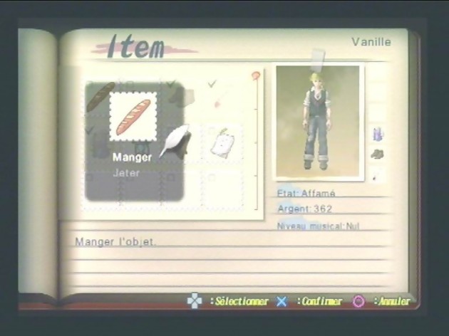 Bien entendu, Steambot Chronicles dispose d'un scénario en toile de fond, mais la découverte de ses détails intimes repose sur votre esprit de curiosité. L'amnésie de Vanilla est prétexte à une reconquête de sa propre personnalité, qui est en réalité vierge par défaut, et se construira ainsi en même temps que la réputation qui découle de ses actes. De nombreux choix sont proposés pendant le jeu, sous forme de décisions à prendre (héroïque ou timoré ?) mais aussi de façon d'agir (respectueux ou distant ?). Autrement dit, l'ensemble de ce qui constitue votre déontologie (éthique et professionnelle), et d'autres détails comme vos habitudes alimentaires et vestimentaires, etc. Le choix du coeur aussi, avec la possibilité de concentrer ses techniques de séduction sur une ou plusieurs gazelles. Bref, c'est le joueur qui forge la personnalité actuelle de Vanilla par ses actions, de sorte que le passé du jeune homme découle de la façon dont vous vivez dans Steambot Chronicles. Le jeu de Irem Software applique donc une formule de libre arbitre qui concorde bien avec son côté touche à tout, sans pour autant donner une dimension parfaitement inédite en ce qui concerne le développement d'une personnalité virtuelle et le degré d'interaction de celle-ci avec son entourage. On entretient simplement une réputation, matérialisée par divers surnoms. Dans ma partie, eu égard à ma manie de baiser (la main) de toutes les dames à qui l'on me présentait, habillé de mon pimpant smoking blanc, Vanilla fut rapidement surnommé "Le Casanova Snobinard". Mais vous pouvez aussi bien vous rasez le crâne chez le barbier puis évoluer en short de bain, chaussé d'une paire de bottes de fermiers et affublé d'une toque de cuisinier. Au fait, il est bon de préciser que la gestion du temps et de la faim est prise en compte, même si ce n'est pas en temps réel. Globalement, les lieux sont moins nombreux que dans un RPG ou un jeu d'aventure ordinaire, mais les quelques villes sont bourdonnantes d'activité, les zones d'exploration souvent constituées de grands espaces naturels immenses et superbes, artistiquement parlant. De fait, malgré sa réalisation éculée, Steambot Chronicles est un très joli petit voyage à bord de Trottemobile. Son mot d'ordre n'est pas tant dans le gigantisme que dans la densité. Le jeu n'a peur d'aucune démesure lorsqu'il s'agit d'étoffer son background, notamment par un album photo qui recense la totalité des PNJ (personnages non joueurs), et ceux-ci sont excessivement nombreux. Steambot Chronicles est le témoin du travail de fond remarquable d'un studio qui a véritablement voulu donner un corps et une âme à son monde actif, pacifique et relativement libre. On comprendrait presque l'impossibilité de se déplacer librement en ville à bord de Trottemobile. Le joueur est contraint de se laisser guider d'un point à l'autre en étant obligé de respecter les aléas du trafic et de la signalisation, autrement dit sans avoir la possibilité de commettre le moindre délit routier ! Comme quoi, même si c'est sous- jacent, le jeu de Irem Software propage une réelle ambition placide et un message de paix absolu, mais encore une fois en esquivant le piège de la niaiserie sirupeuse. S'il s'efforce d'être le moins linéaire possible, Steambot Chronicles est donc également soumis à des lois de bienséance. Adeptes des tueries urbaines, ce n'est pas par ici que ça se passe.