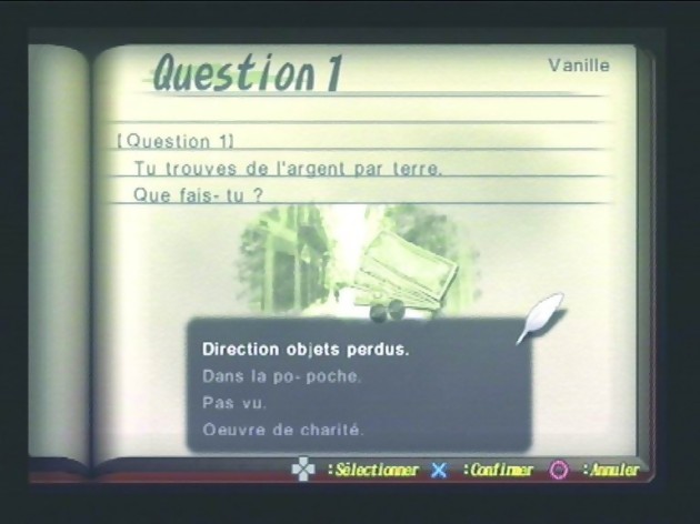 Bien entendu, Steambot Chronicles dispose d'un scénario en toile de fond, mais la découverte de ses détails intimes repose sur votre esprit de curiosité. L'amnésie de Vanilla est prétexte à une reconquête de sa propre personnalité, qui est en réalité vierge par défaut, et se construira ainsi en même temps que la réputation qui découle de ses actes. De nombreux choix sont proposés pendant le jeu, sous forme de décisions à prendre (héroïque ou timoré ?) mais aussi de façon d'agir (respectueux ou distant ?). Autrement dit, l'ensemble de ce qui constitue votre déontologie (éthique et professionnelle), et d'autres détails comme vos habitudes alimentaires et vestimentaires, etc. Le choix du coeur aussi, avec la possibilité de concentrer ses techniques de séduction sur une ou plusieurs gazelles. Bref, c'est le joueur qui forge la personnalité actuelle de Vanilla par ses actions, de sorte que le passé du jeune homme découle de la façon dont vous vivez dans Steambot Chronicles. Le jeu de Irem Software applique donc une formule de libre arbitre qui concorde bien avec son côté touche à tout, sans pour autant donner une dimension parfaitement inédite en ce qui concerne le développement d'une personnalité virtuelle et le degré d'interaction de celle-ci avec son entourage. On entretient simplement une réputation, matérialisée par divers surnoms. Dans ma partie, eu égard à ma manie de baiser (la main) de toutes les dames à qui l'on me présentait, habillé de mon pimpant smoking blanc, Vanilla fut rapidement surnommé "Le Casanova Snobinard". Mais vous pouvez aussi bien vous rasez le crâne chez le barbier puis évoluer en short de bain, chaussé d'une paire de bottes de fermiers et affublé d'une toque de cuisinier. Au fait, il est bon de préciser que la gestion du temps et de la faim est prise en compte, même si ce n'est pas en temps réel. Globalement, les lieux sont moins nombreux que dans un RPG ou un jeu d'aventure ordinaire, mais les quelques villes sont bourdonnantes d'activité, les zones d'exploration souvent constituées de grands espaces naturels immenses et superbes, artistiquement parlant. De fait, malgré sa réalisation éculée, Steambot Chronicles est un très joli petit voyage à bord de Trottemobile. Son mot d'ordre n'est pas tant dans le gigantisme que dans la densité. Le jeu n'a peur d'aucune démesure lorsqu'il s'agit d'étoffer son background, notamment par un album photo qui recense la totalité des PNJ (personnages non joueurs), et ceux-ci sont excessivement nombreux. Steambot Chronicles est le témoin du travail de fond remarquable d'un studio qui a véritablement voulu donner un corps et une âme à son monde actif, pacifique et relativement libre. On comprendrait presque l'impossibilité de se déplacer librement en ville à bord de Trottemobile. Le joueur est contraint de se laisser guider d'un point à l'autre en étant obligé de respecter les aléas du trafic et de la signalisation, autrement dit sans avoir la possibilité de commettre le moindre délit routier ! Comme quoi, même si c'est sous- jacent, le jeu de Irem Software propage une réelle ambition placide et un message de paix absolu, mais encore une fois en esquivant le piège de la niaiserie sirupeuse. S'il s'efforce d'être le moins linéaire possible, Steambot Chronicles est donc également soumis à des lois de bienséance. Adeptes des tueries urbaines, ce n'est pas par ici que ça se passe.